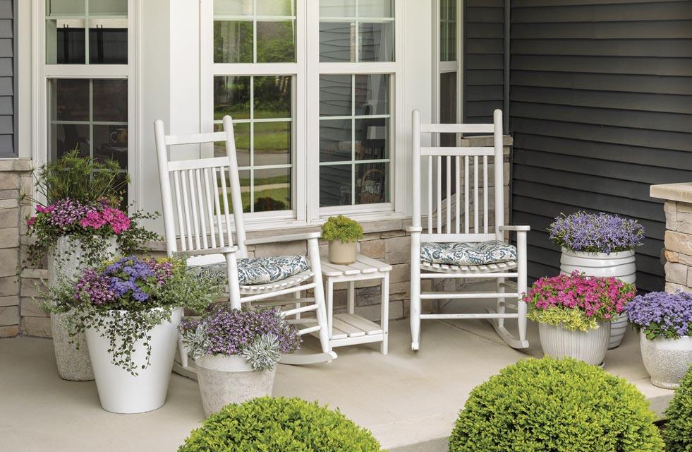 For a picture-perfect entrance, grow our National Recipes of the Year™ in hanging baskets overhead and upright pots flanking your door. With options for sun and shade, as well as self-watering AquaPots®, premium potting soil and plant foods to help them flourish, you’ll have the nicest porch on the block.