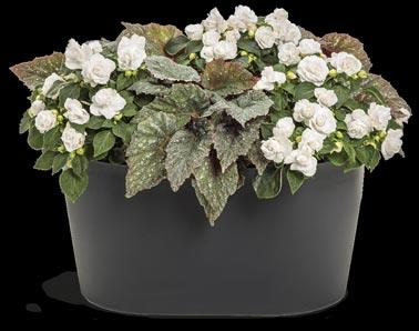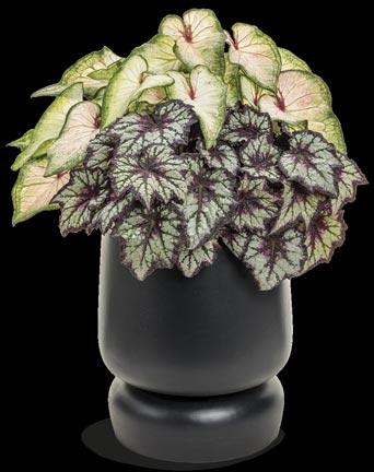 Above and in containers at right: SPACE AGE® BLACK HOLE™ Begonia, SPACE AGE® TRITON™ Begonia, HEART