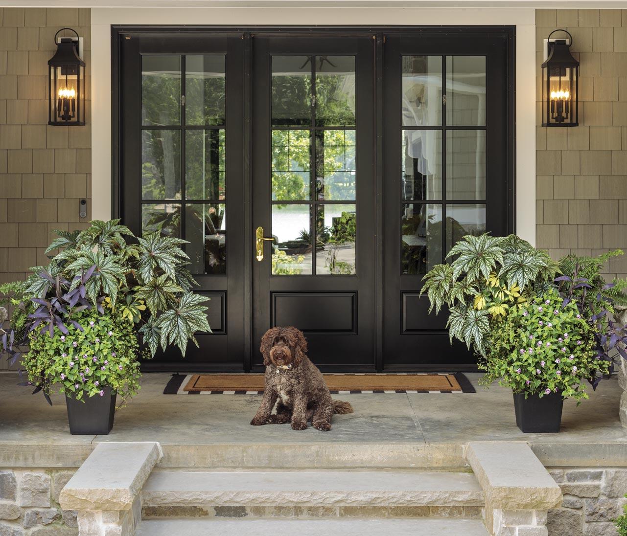 It’s a myth that large containers are more work. Because they hold more soil and moisture, the plants thrive without the constant stress of drying out. Plus, when you prioritize bold foliage over plentiful blooms, they are more versatile in sun and shade. If you’re looking to limit maintenance, consider simplifying your landscaping but use large porch pots with stunning curb appeal. Start with larger centerpiece plants to achieve balance and get the look you’re going for faster.