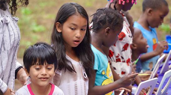Refugee children discovered their self-worth by decorating personalized picture frames with a variety of colors. They also engaged in activities that encouraged them to reflect on the things they are grateful for. Through these experiences, they learned how to cooperate with others from different backgrounds, taking their first steps toward becoming citizens of peace.