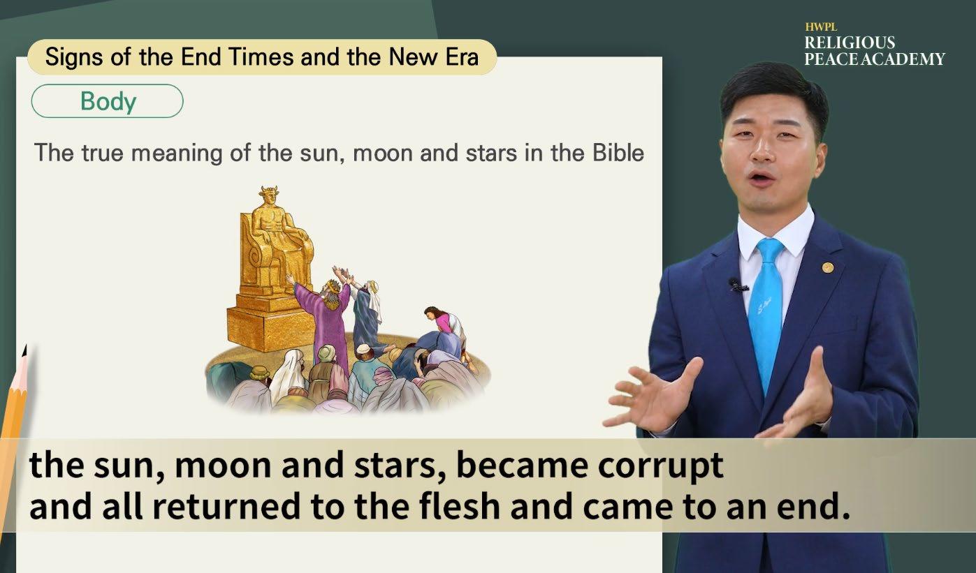 나타내는 비유적 언어이지 문자 그대로의 자연계의 종말이 아닙니다. 그 후 요한계시록에 새 하늘과 새 땅으로 묘사된 새 시대가 열리며 죽음이 끝나고 생명이 시작되며 천국이 완성됩니다.