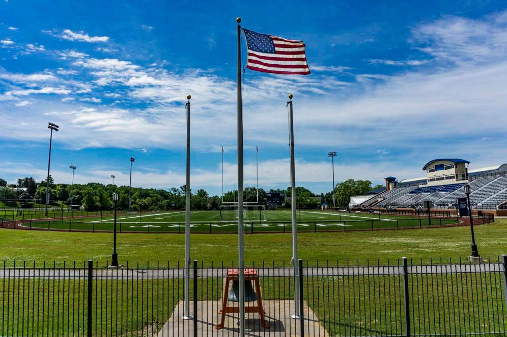 170. Hobart and William Smith Colleges - Archives and Special Collections - Photograph Collection, Memorial Bench Description Photograph of the flagpole and the Memorial Bench, which was dedicated during the Hobart College Centennial celebrations, undated.
