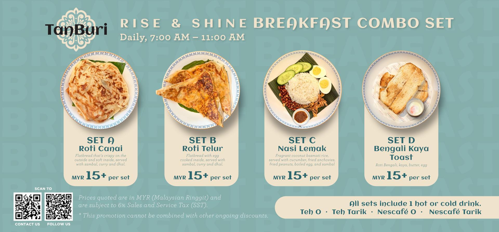 Tanburi’s Rise & Shine Breakfast Combo Set is here, bringing you an easy and fulfilling breakfast whilst also giving the comforting richness of Malaysian favorites and international cuisines.