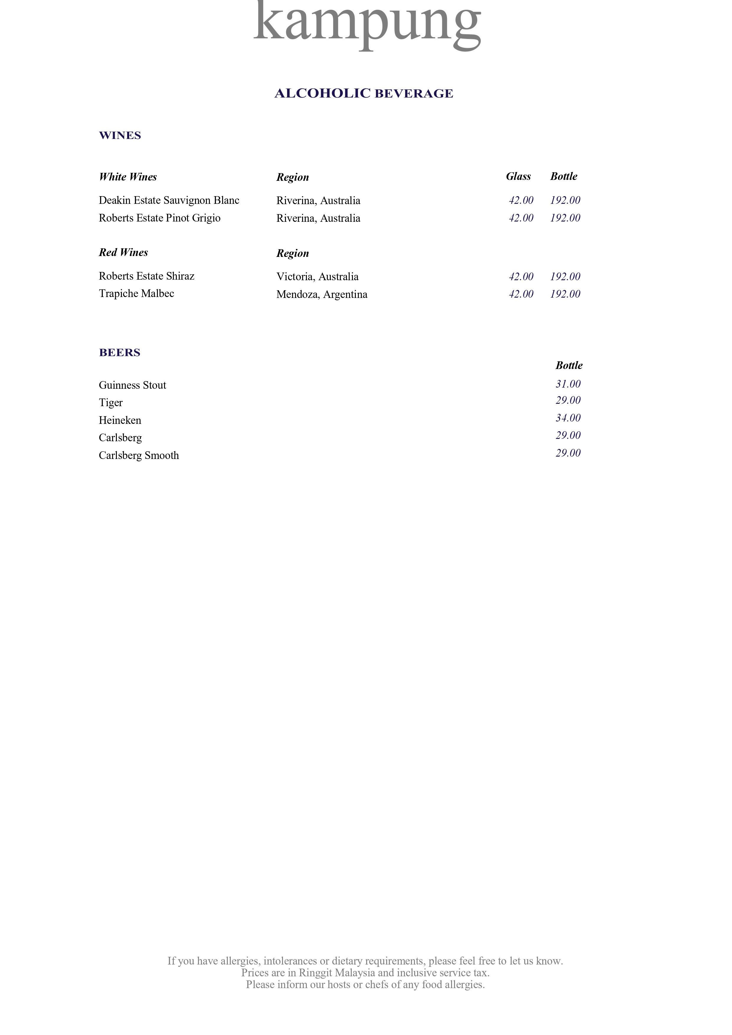 MENU: Kampung À La Carte Menu