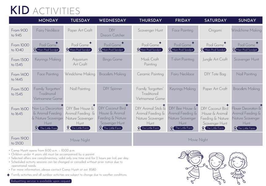 있습니다. Camp Hyatt는 아이들이 아침부터 저녁까