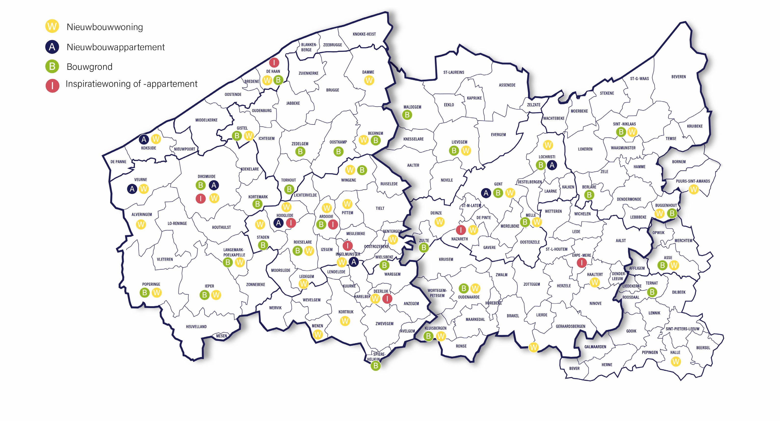 Van de kust over Oost-Vlaanderen tot Antwerpen. Je vindt er onze projecten steevast op goede locaties, in de buurt van winkels en openbaar vervoer.