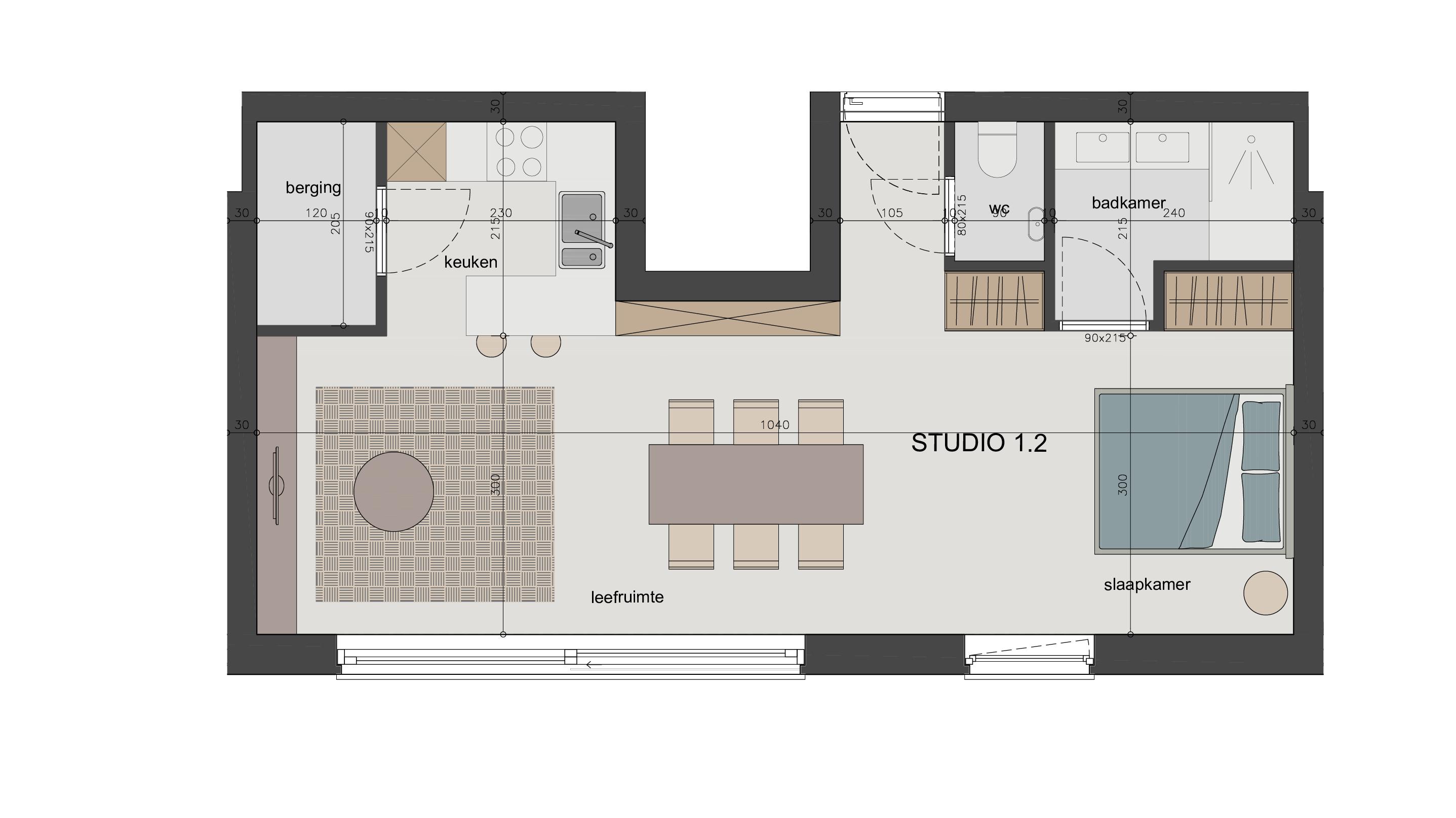 • Ieder appartement heeft een tuin en/of terras, uitgezonderd studio 01.02