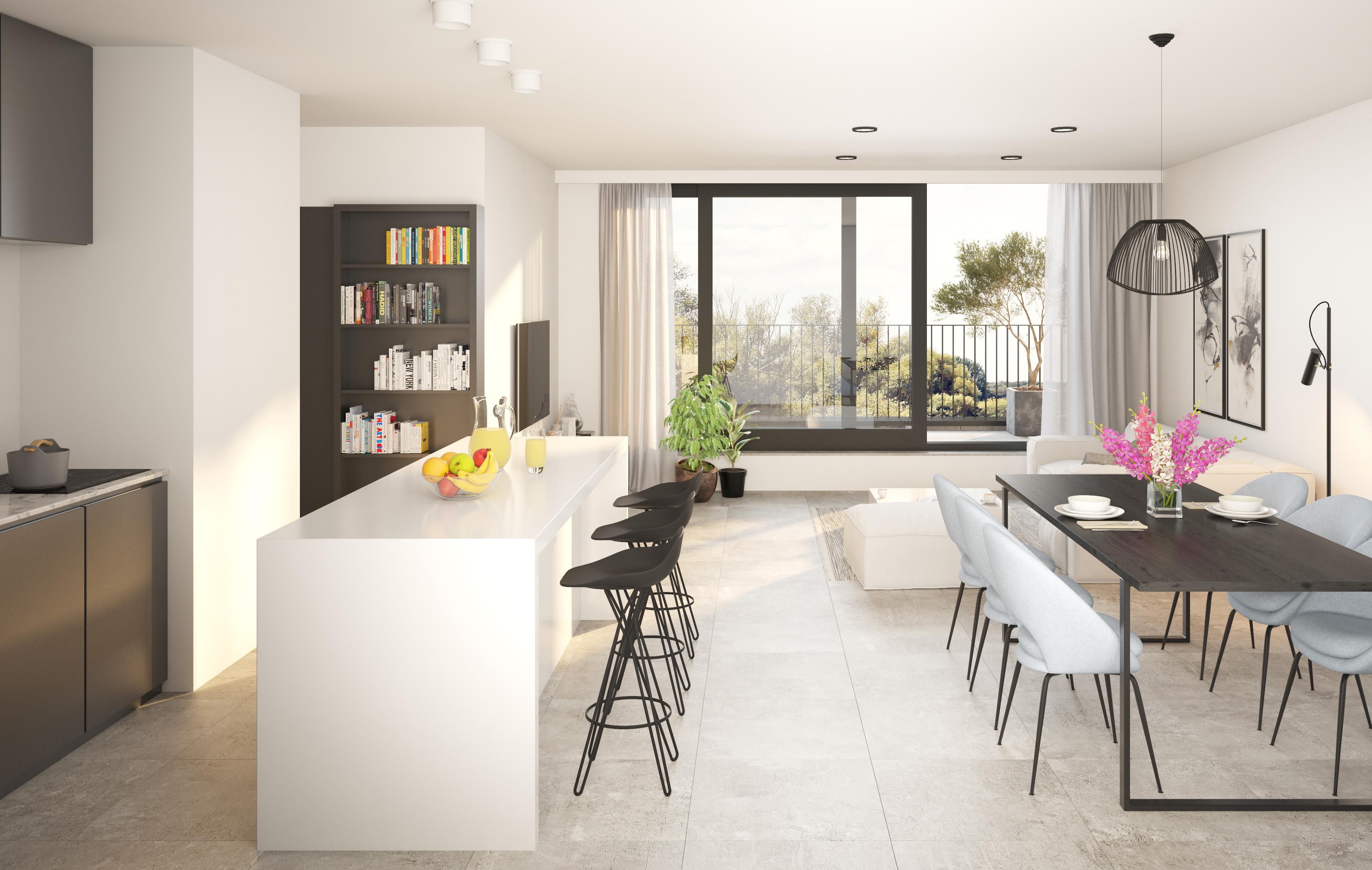 Dankzij de doordachte, open indeling en de vele lichtinval, voelt elk appartement erg ruim aan
