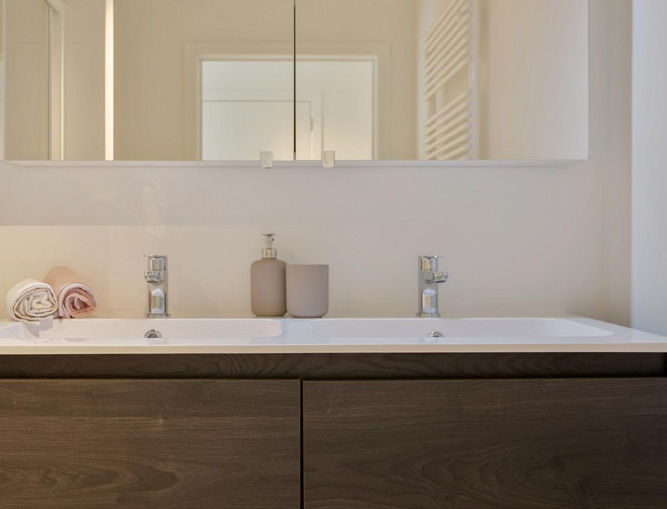 • Iedere badkamer is voorzien van een inloopdouche en badkamermeubel