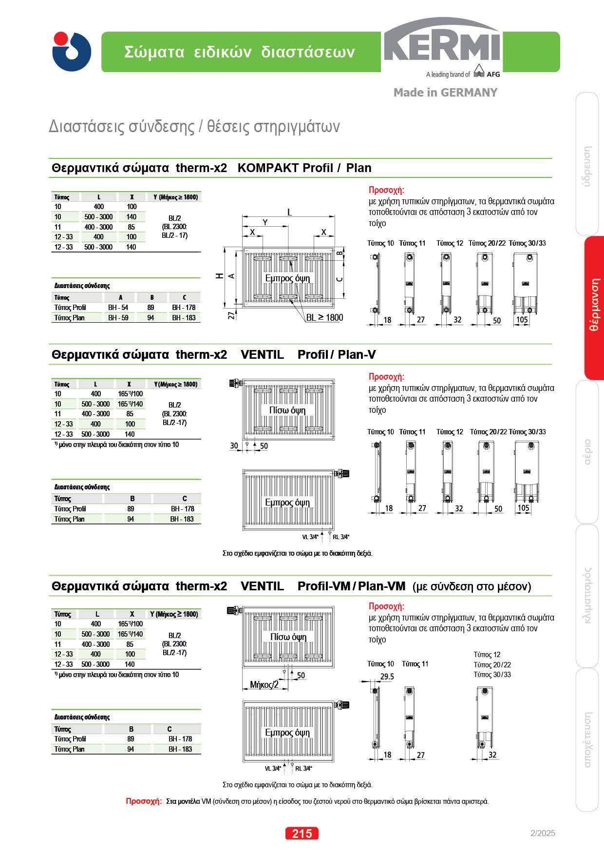 Kermi 204, LINEA 223, 225, Kermi 211, IRSAP 226, Westcal 227
