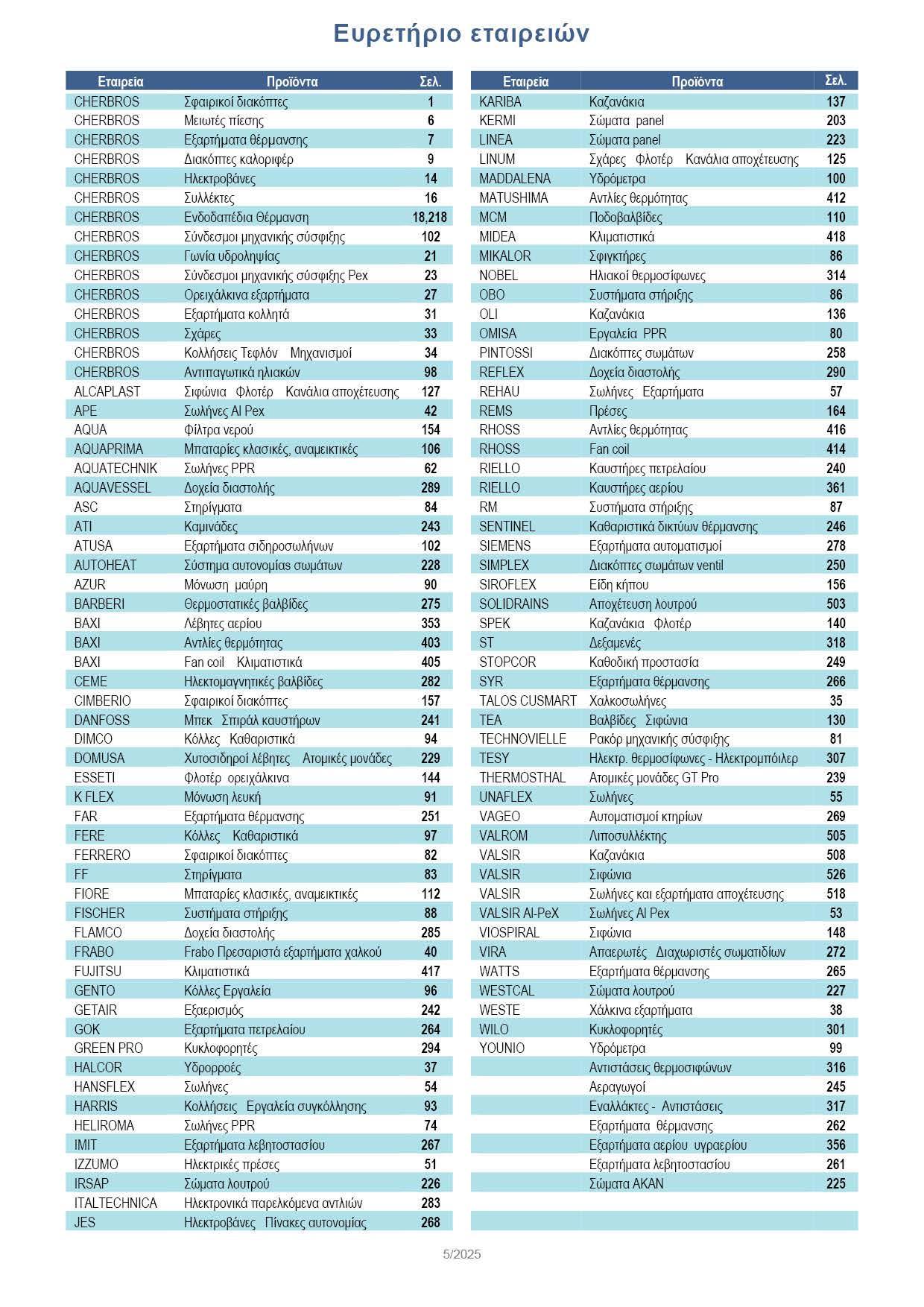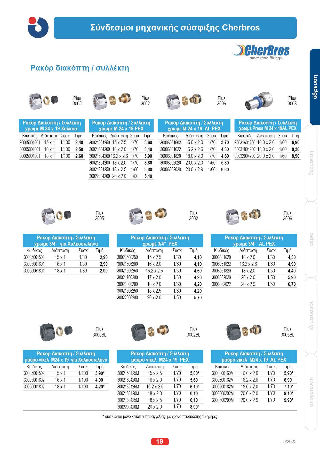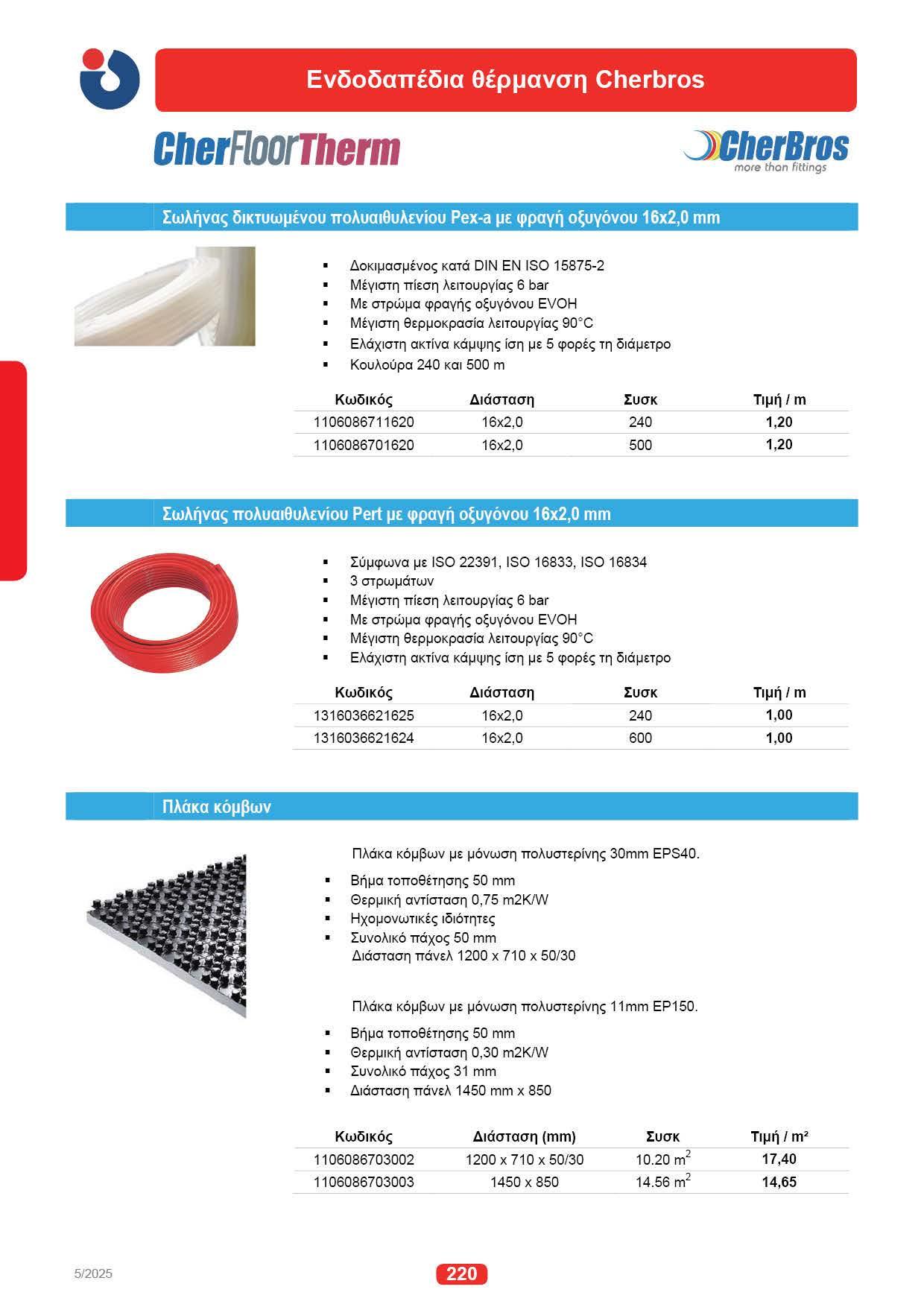 CherBros 33, LINUM 125, CherBros 506 42 , Valsir 53, Rehau 58