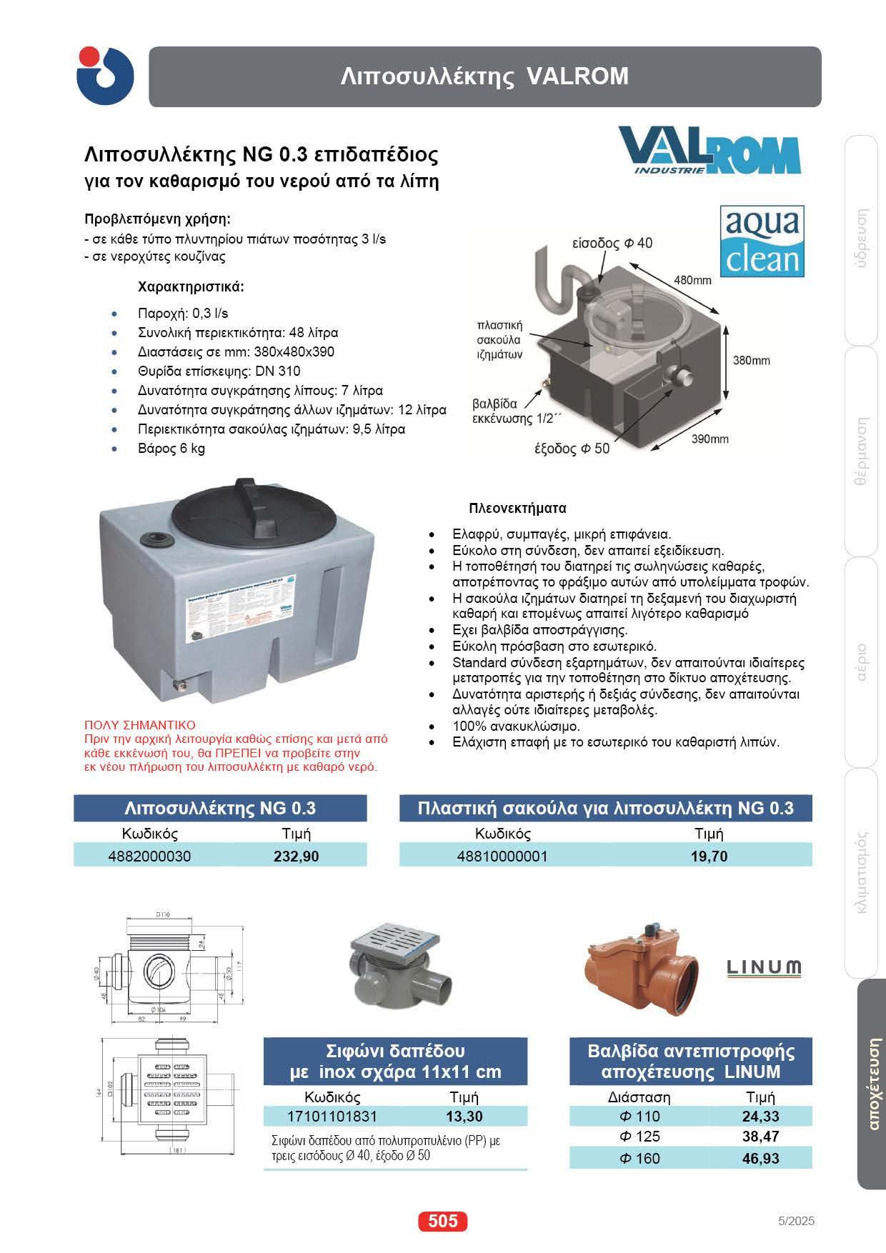 Va lrom 505, Valsir 518, Solidrains 503