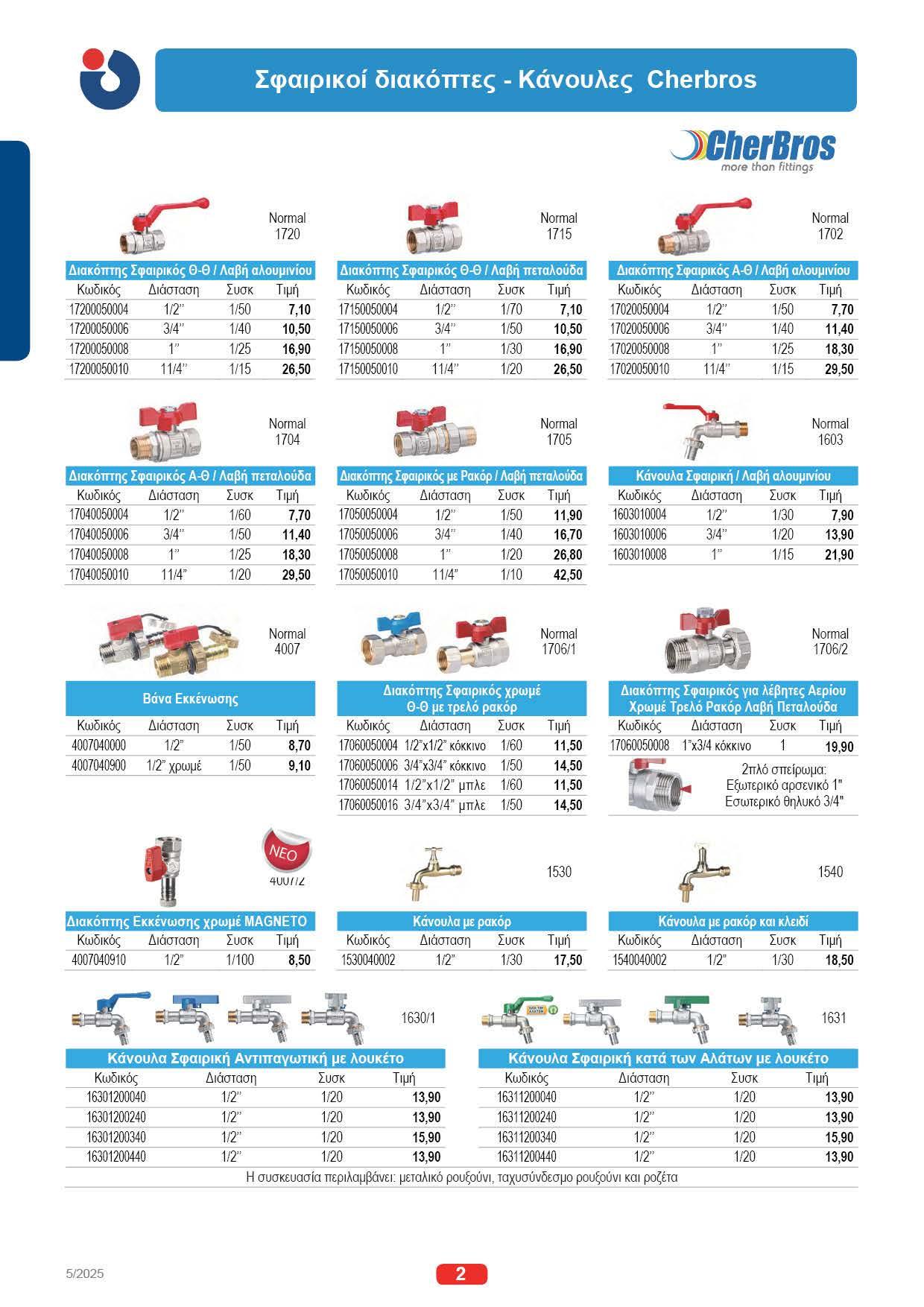 CherBros 7, FAR 257, Barberi 275 135, 146, OL\ 135, Spek 140, Valsir 508 246
