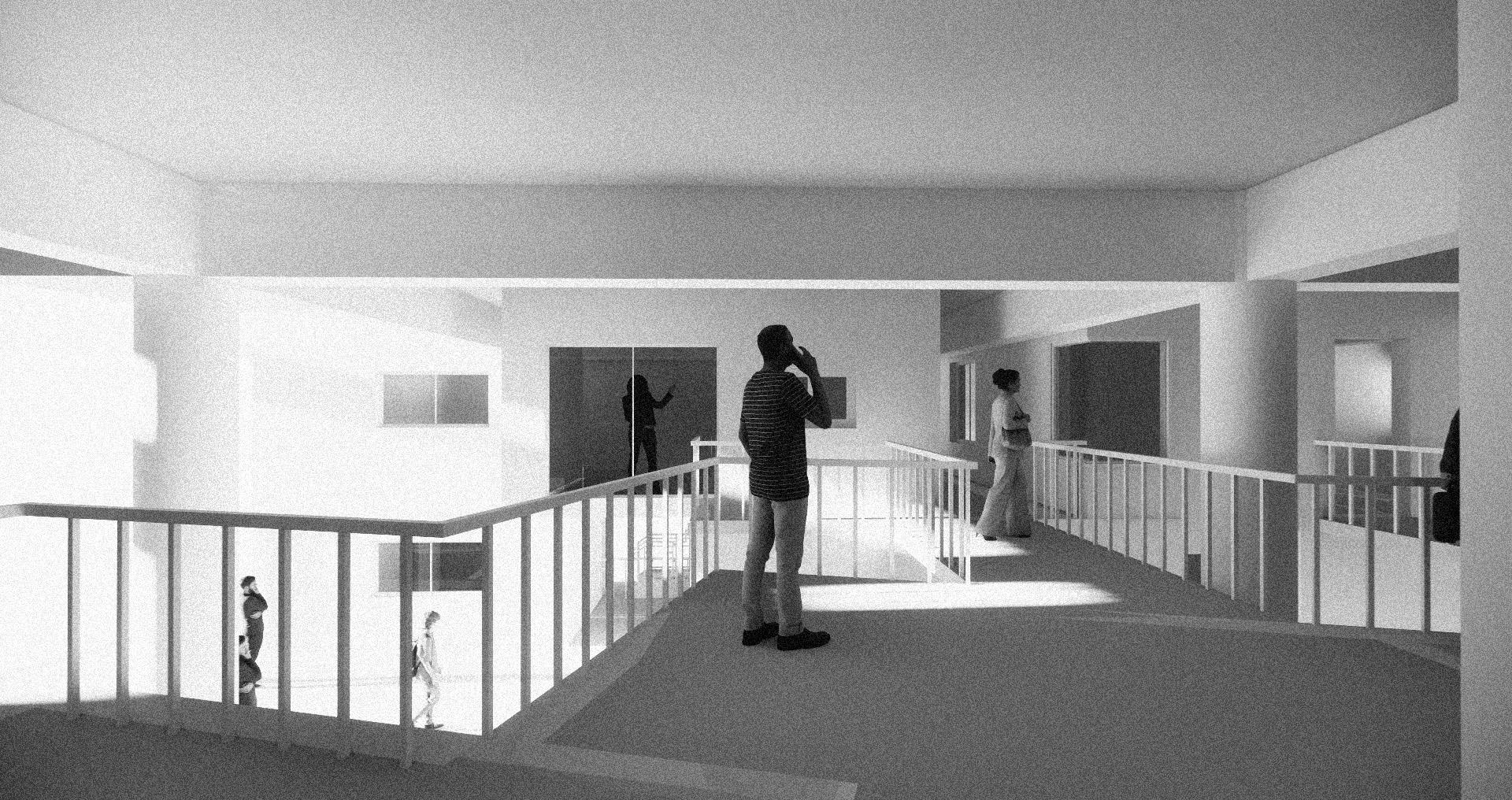 The youth rental housing provides short-term accommodation for people under 35. Unlike long-term residents, I focus on the relationships between individuals. The aim is to allow personal space to be slightly expressed without disturbing others. Each unit has two floors, offering spacious public areas. The design alternates between two types of units.