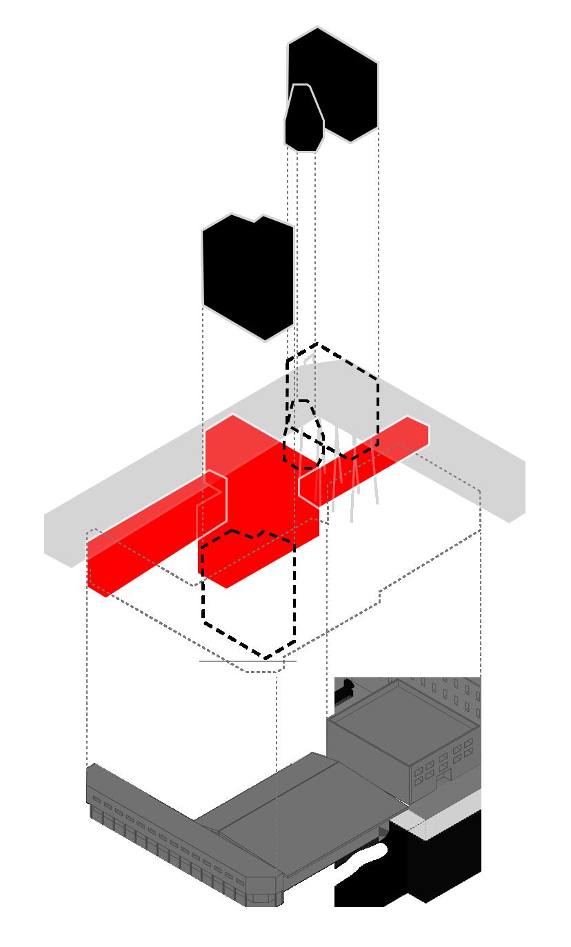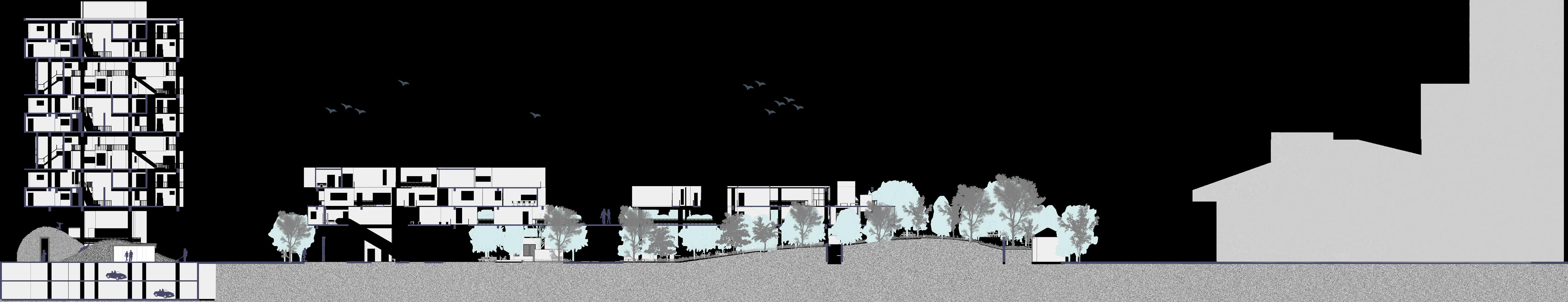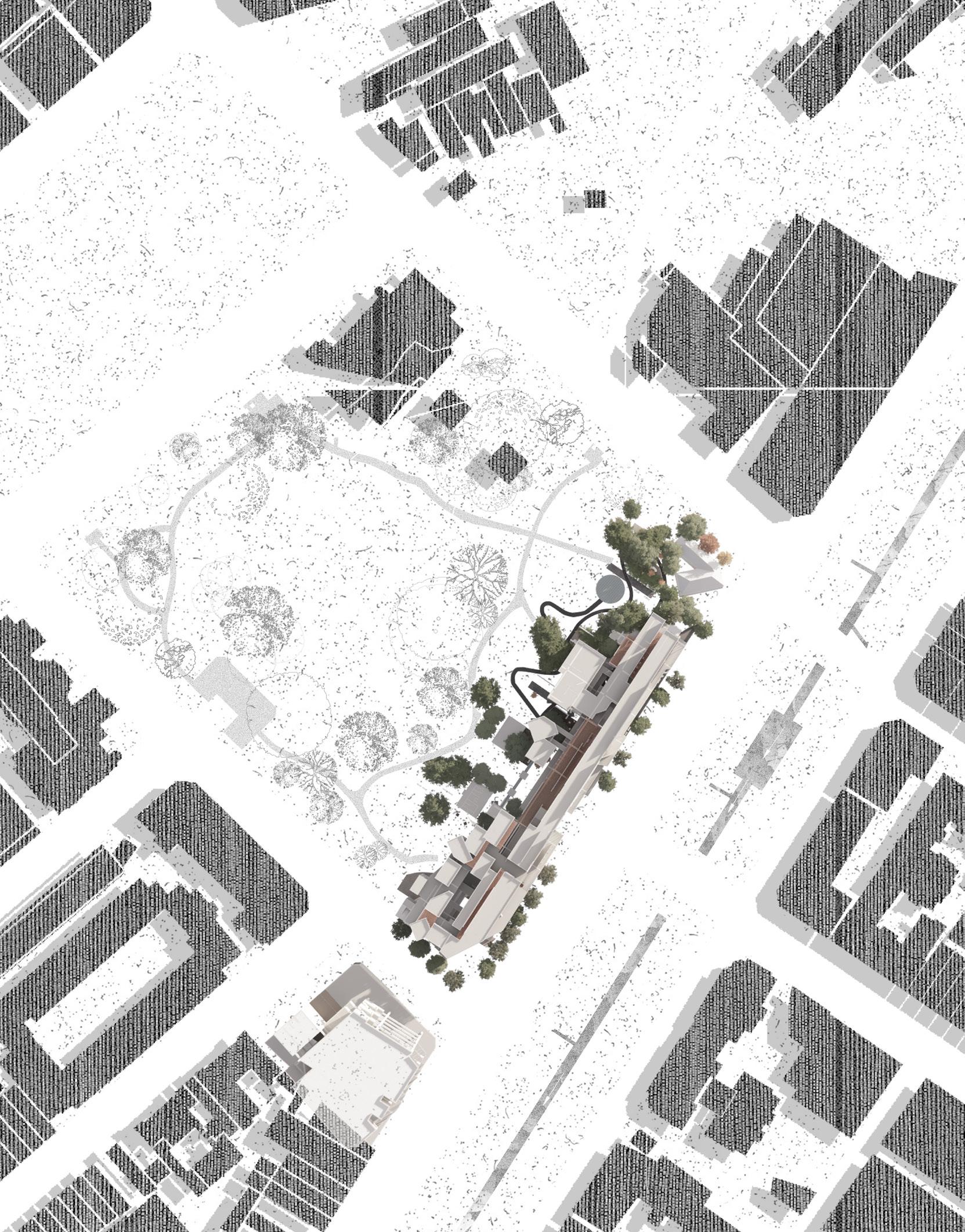 The complex buildings (redesign of the park) focus on its relationship with the city and surrounding environment. By designing interactions at different heights, the public spaces are maximized and the activities will happen at not just the same level.