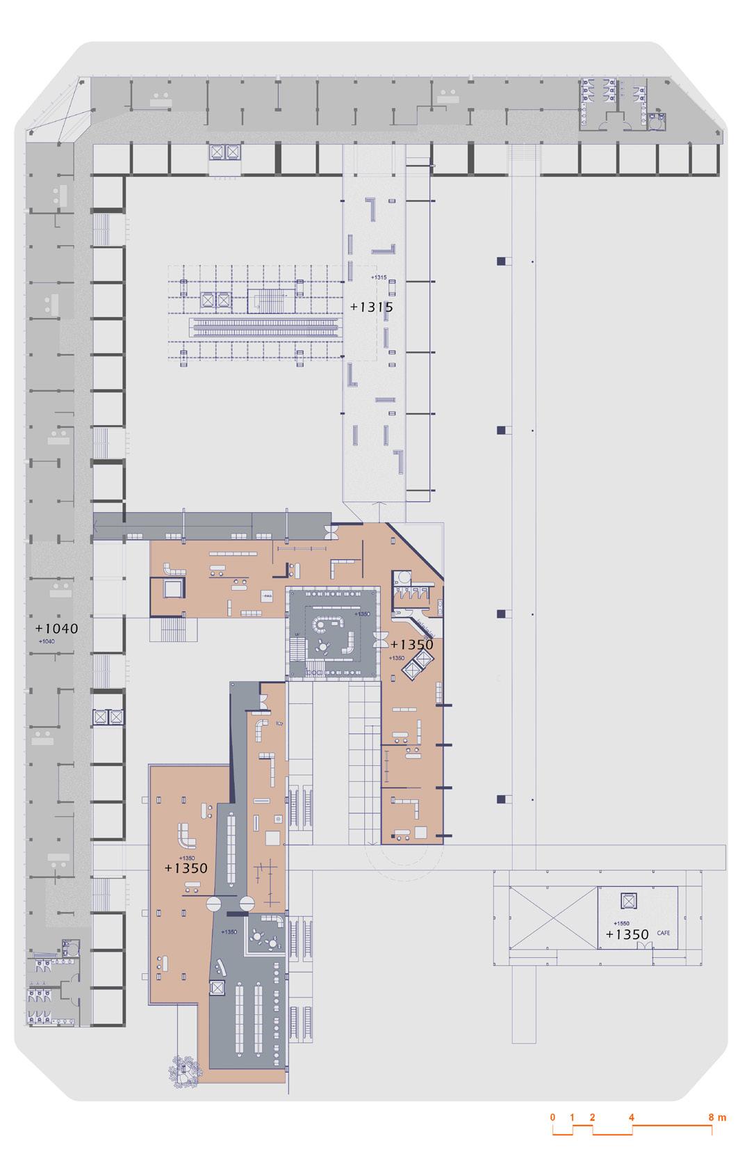 People move continuously between the old and new structures, creating a dynamic interaction. While the old market may no longer be functional, reinterpreting its original spatial dimensions becomes an act of memory and exhibition.