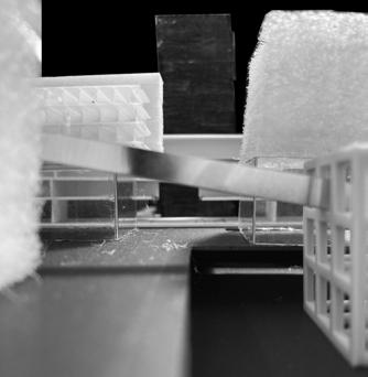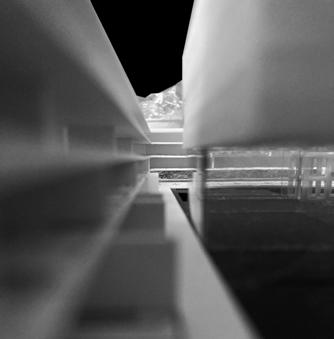The design uses many parallel walls of varying thicknesses to create different size of walkway with a view at the end of it. This allows people's experience to avoid being confined to a closed loop.People are able to see different views of the city from various heights and perspectives.The ground floor links the rental housing with the park, extending activities into the nearby residential area and highlighting the river’s proximity.