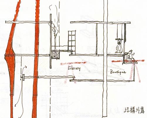 The public open space inside is simultaneously framed and sheltered by the L-shaped volume, enhancing its sense of enclosure and cohesion The building facade utilizes a highly transparent metal mesh to blur the boundaries of internal activities. The circulation paths of the bookstore and the boutique continuously intersect, when browsing the bookstore is simultaneously browsing the boutique.