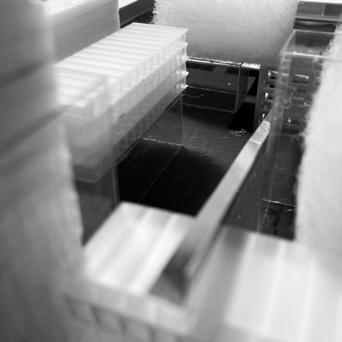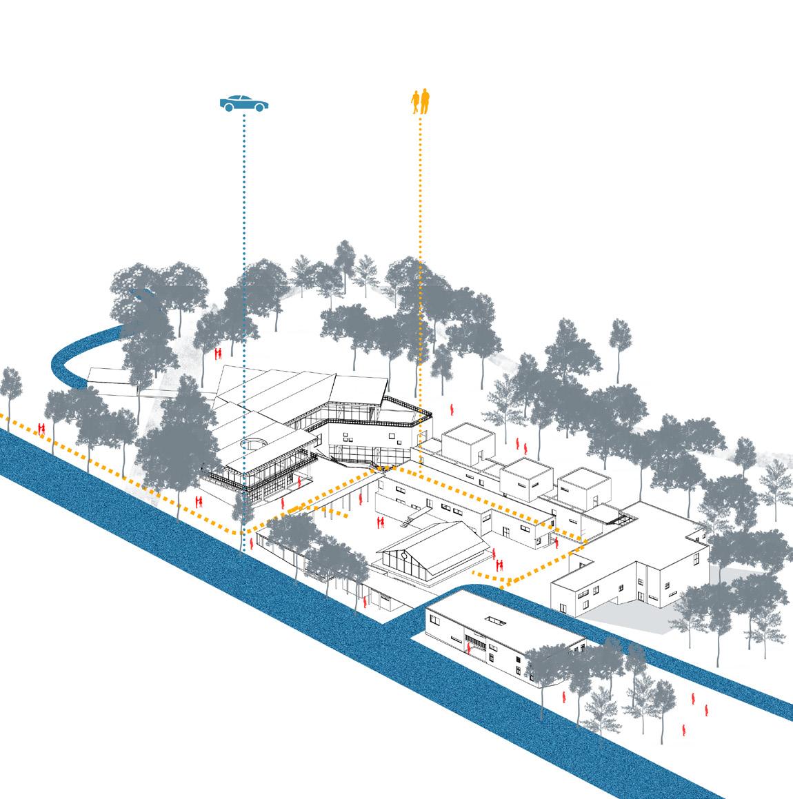 The right side of the site is designed to create as much open space as possible for public activities, reducing the density of the crowded urban block.