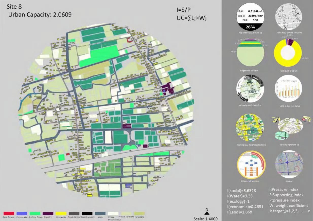 Overview: The project examines the urban carrying capacity of a site in the suburban area of Pudong District in Shanghai. This capacity represents the maximum value that can be sustained in a given environment, considering the pressure factors of the resources and services within the framework of sustainable development.