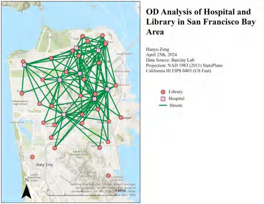This study applies GIS-based spatial analysis techniques to evaluate healthcare accessibility, transportation networks, and commercial service optimization in the San Francisco Bay Area. I applied service area modeling, origin-destination (OD) analysis, and location-allocation modeling.