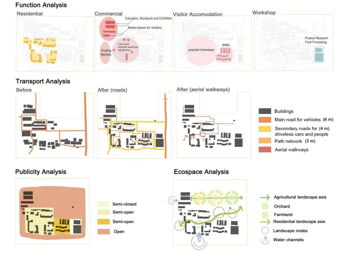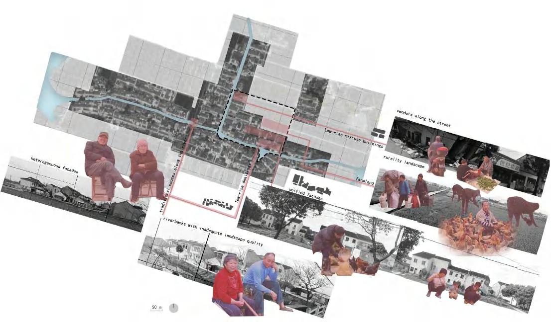 The site features bluegreen infrastructure but faces aging, migrant influx, and weak agriculture. I identified issues in agricultural inefficiency and proposed an integrated strategy to activate the secondary and tertiary sectors, boosting income and rural vitality.