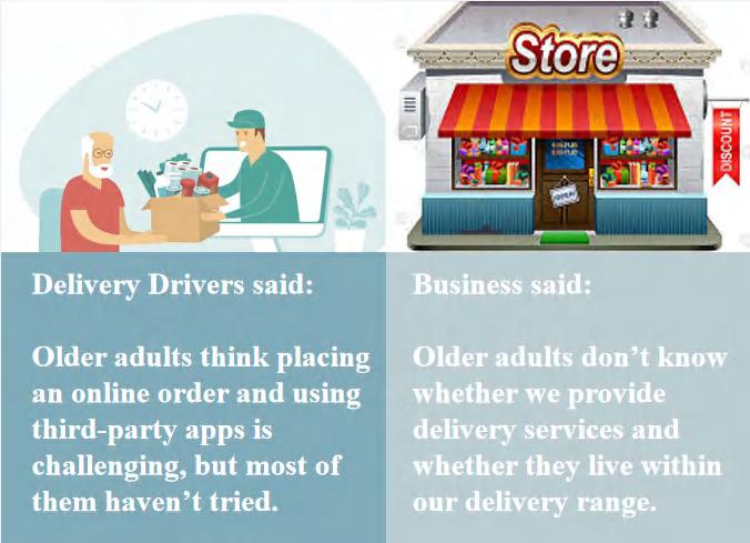 Older adults don’t know whether we provide delivery services and whether they live within our delivery range.