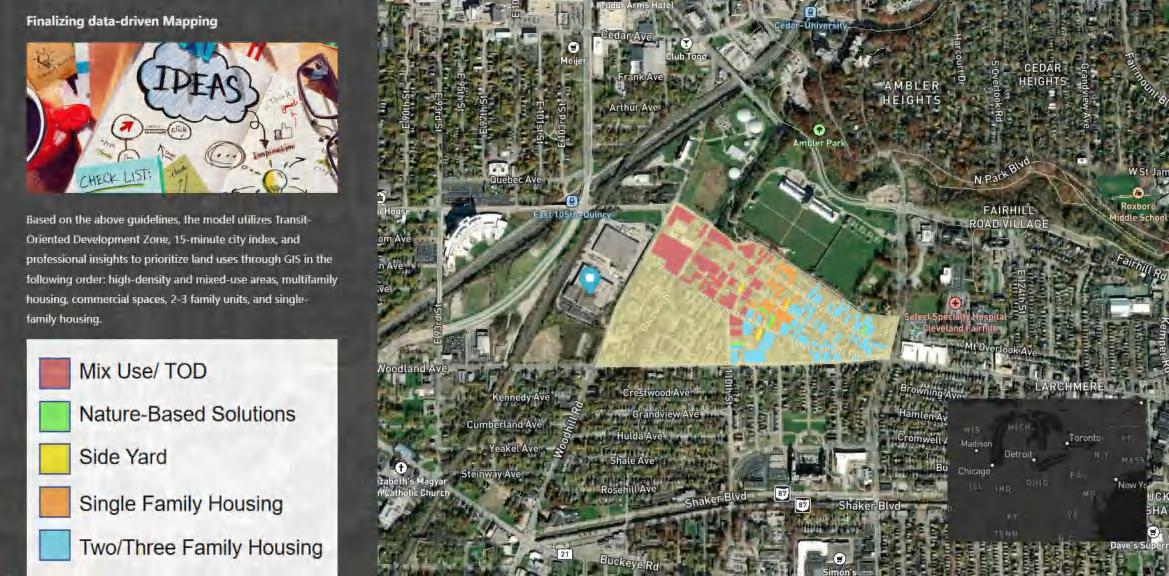 I authored a 30-page report detailing the methodology and recommendations behind a decision-making model designed to prioritize vacant land use recommendations within three months. This structured approach integrated data-driven mapping, community engagement, and policy alignment to support strategic land use planning. It also incorporates accessibility, walkability, and connectivity considerations when assessing scenarios. The report was submitted to the Cleveland Planning Commission and CDCs for future reference.