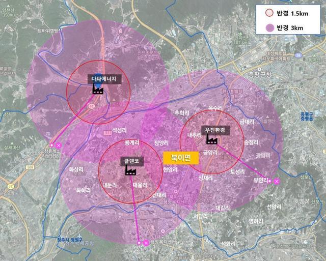 청주는 전체 국토의 5% 면적임에도 전체 쓰레기량의 약 20%를 처리하는 곳이 되었다. 백두대간 보호구역을 관통함에도 ‘조건부 동의’가 내려진 500kV 송전선로 역시 삼척 화력발전소, 울진 핵발전소에서 생산된 전력을