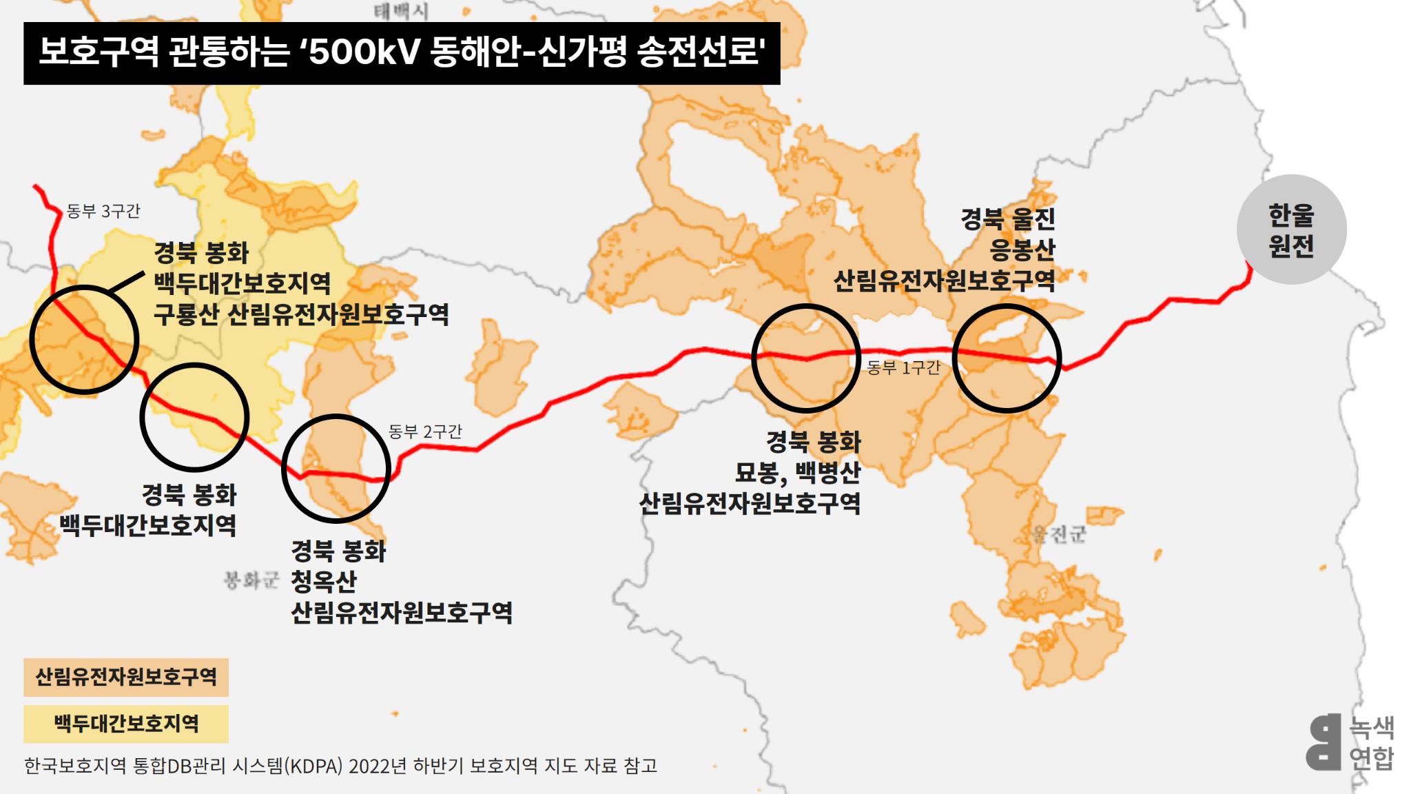 정도면 낙동정맥 주능선이고 울진삼척 산림보호구역에 산양서식지, 담비, 하늘다람쥐 등의