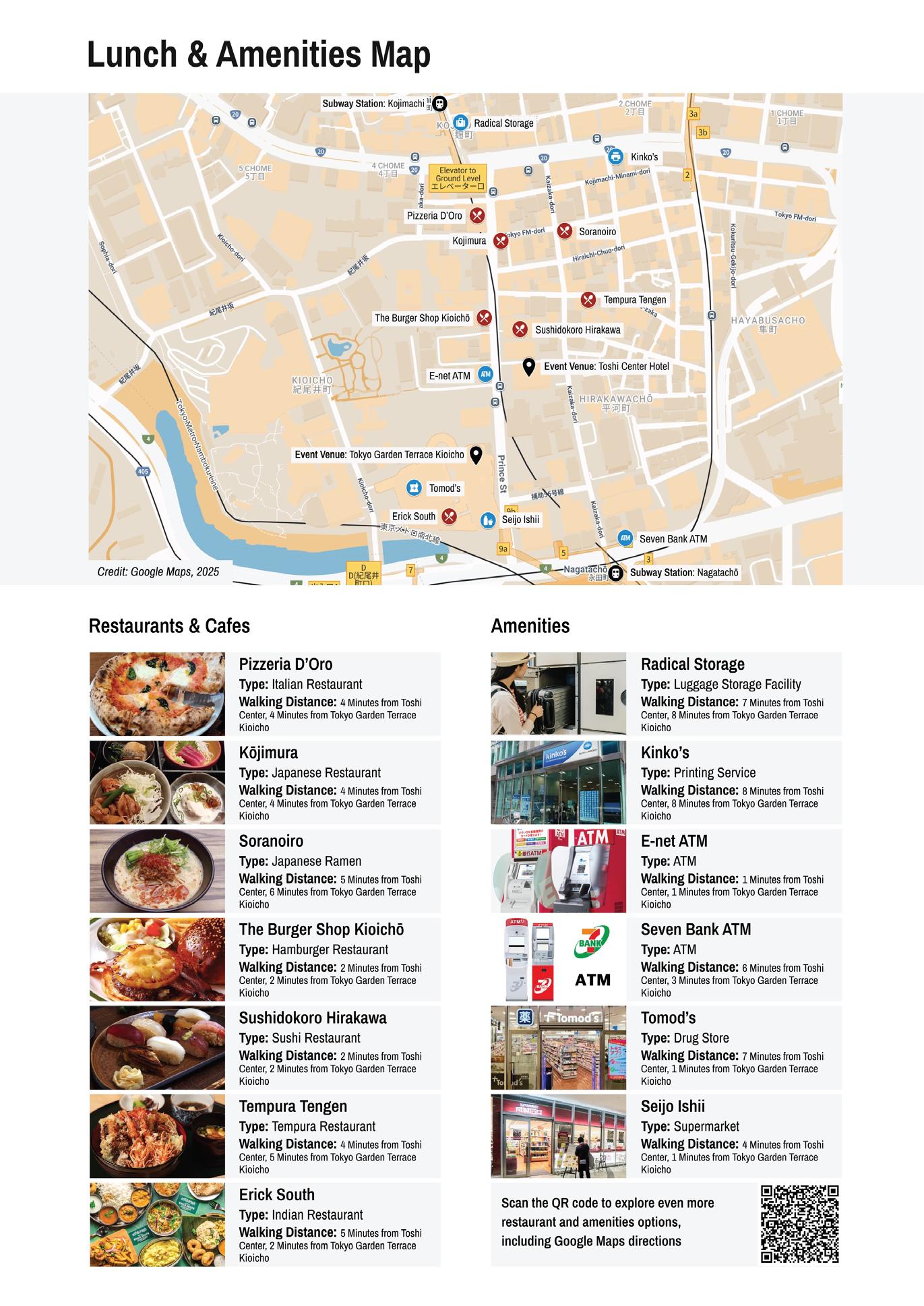 Please note that lunch is not provided. This map offers suggestions on where you can eat around the conference venue, as well as the locations of local amenities.