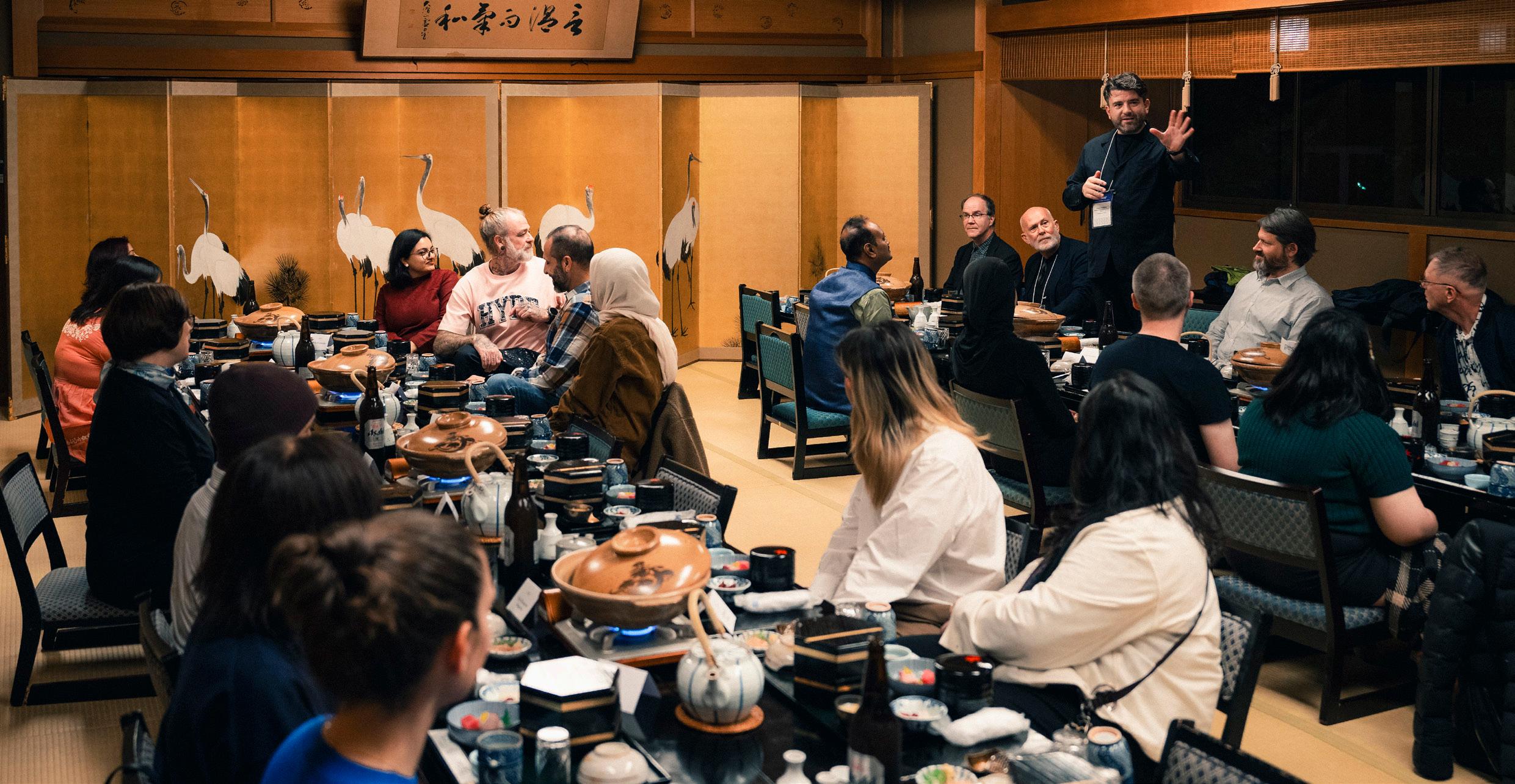 IAFOR returned to Yachiyo Nanzenji for the Conference Dinner in Kyoto. The venue is a traditional Japanese-style ryokan or inn located near the Zen Buddhist Nanzenji Temple, its traditional Japanese-style interior and hospitality in its most genuine form provided the perfect place and feeling of Kyoto. The Conference Dinner brought keynote speakers, presenters, and delegates together to connect over a course meal of traditional Japanese dishes overlooking the Japanese garden situated outside the dining hall, which featured the vibrant red leaves of Japan’s autumn season.