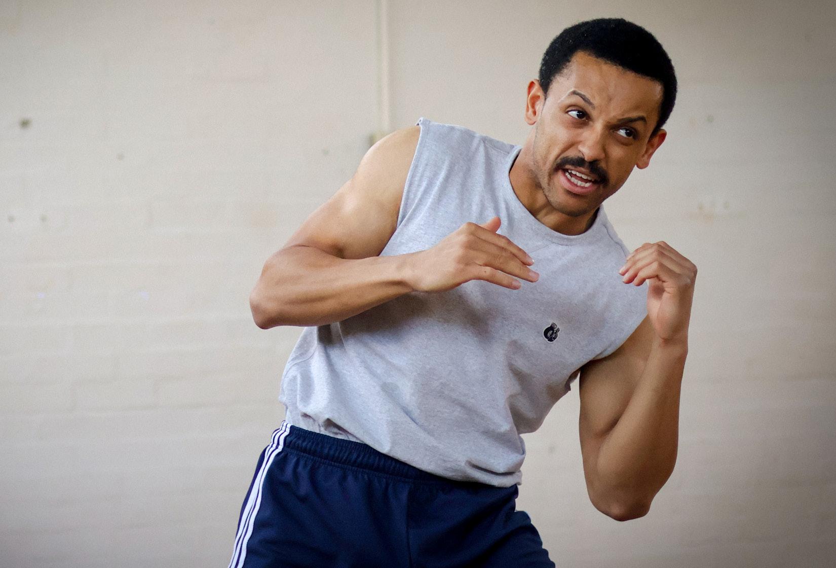 This show came out of a more recent big production though. Aron was in Boys From The Blackstuff in 2023, playing Loggo. He talked to us about writing a show about John Conteh and that he was talking to Mark Womack who was also in Boys From The Blackstuff, about it every night too. Mark jumped on board as Director and he has been instrumental in the show taking shape.