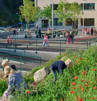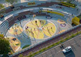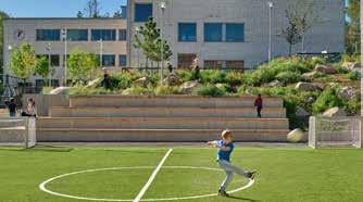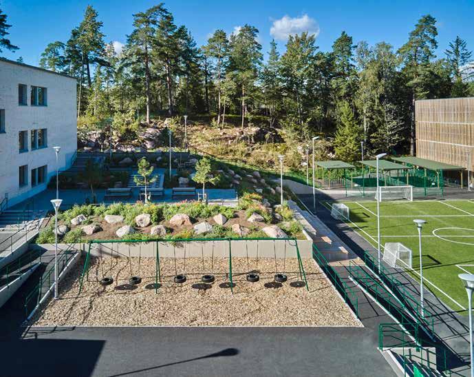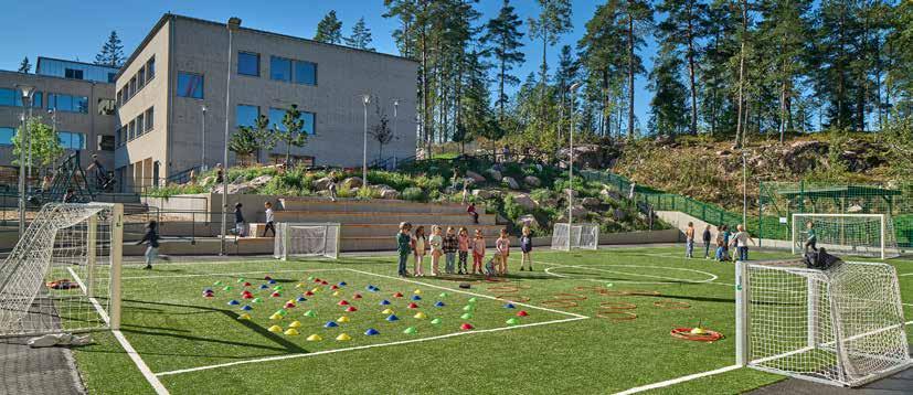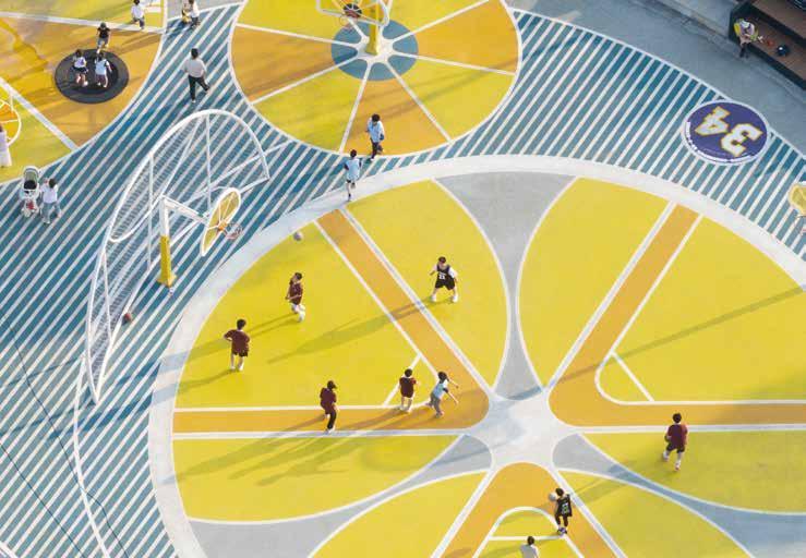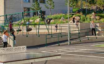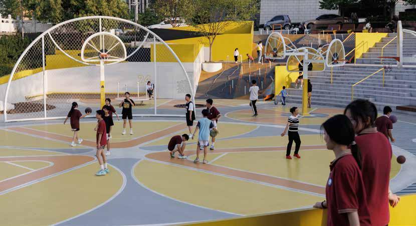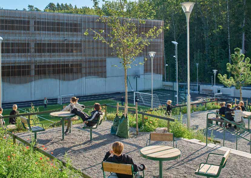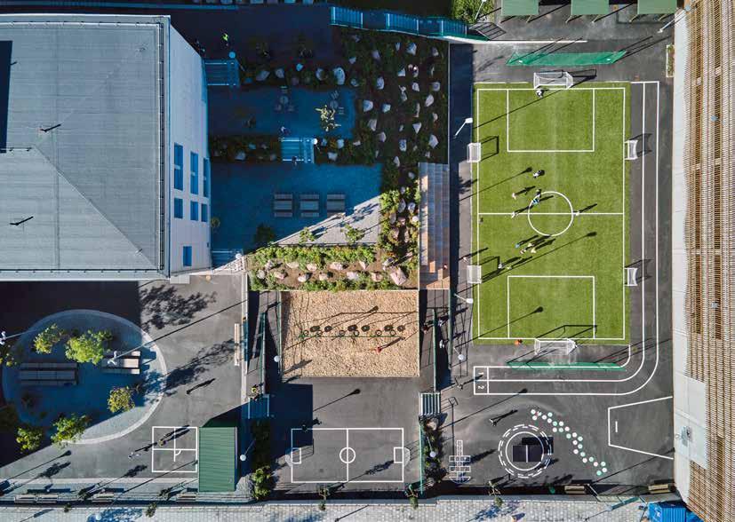 The skatepark in Mińsk Mazowiecki, Poland and the Oelde Activity Park in Germany, illustrate how action sports facilities can become vibrant venues where young people can meet. Skateparks have long become more than just sports facilities – they are social spaces where exercise, creativity and community converge. The Yichang Development Avenue Basketball Park in Yichang, in the west of China’s province of Hubei, shows how thoughtfully designed sports facilities can breathe new life into even challenging urban spaces. Today, basketball courts are among the most easy-access and universally understood opportunities for physical exercise in public urban spaces. Exercise is also becoming increasingly appreciated in the school environment. Projects such as Väsjöskolan in Sweden underline how school playgrounds and educational spaces are being conceived increasingly as versatile activity areas.