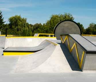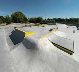 At the same time, skateparks take up much less space than many other outdoor sports facilities, although, as man-made urban spaces, they intrude into existing environmental structures. The various roller sports require particularly hard and smooth surfaces. Modern skateparks are therefore predominantly constructed using in-situ concrete, a method in which the various elements of the facility – such as quarter pipes, bowls, banks and flat sections – are shaped on site in reinforced concrete and joined together to form a continuous skating surface.