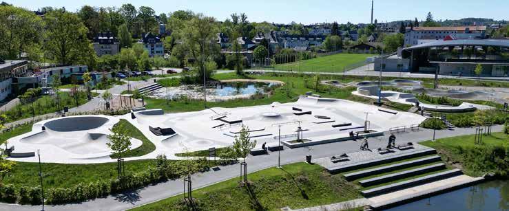 Placing the emphasis on ecology also makes sense because skateparks already demonstrate numerous positive attributes in terms of social and economic sustainability. Modern skateparks are generally operated as freely accessible public facilities permitting a particularly high level of usage. When considering investment costs per hour of use, they demonstrate high spatial efficiency and thus significantly outperform many other sports facilities. Added to this are comparatively long periods of use by participants and relatively low maintenance costs for in-situ concrete.