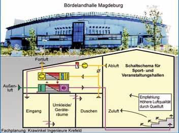 Raumluftkühlung für Sportstätten mit Wärmerückgewinnung und Naturkühlung