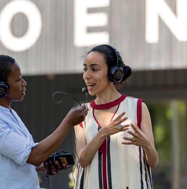 Nieuw-West heeft volgens Jaleesa heel veel te bieden. Dat ontdekte ze helemaal toen ze als cultuurverkenner aan de slag ging. ‘In coronatijd verloor ik mijn baan als radiomaker bij FunX. Ik was dertig, net moeder en had een nieuw huis. Hoe moest ik me redden?’ Ze besloot zich kwetsbaar op te stellen en te gaan vloggen. ‘Al snel vroeg Peter Both van New Metropolis of ik een podcast over muziek voor jongeren in NieuwWest wilde hosten.’
