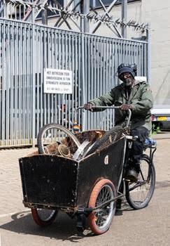 Aan het eind van het pad zit een schroothandel, dus het is de hele dag een komen en gaan van bakfietsen en karretjes vol oud ijzer.