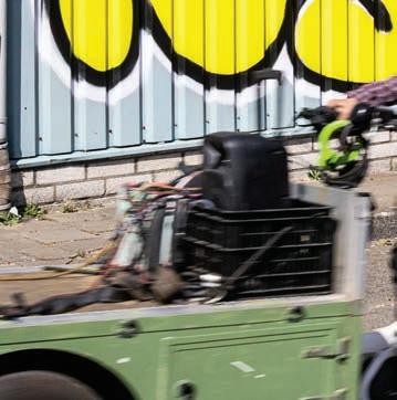 materialenhandel in de loodsen hier op het Zeeburgerpad.’ Omdat ze er is opgegroeid, vindt ze het belangrijk dat de historie van het pad behouden wordt. ‘We willen dat er gebouwd wordt met goede materialen en dat er niet alleen maar rechte blokken komen, want dat past niet tussen de rest.’ Ze ziet voor zich dat het pad een mooie, nieuwe plek wordt waar zowel gewoond als gewerkt kan wor- >