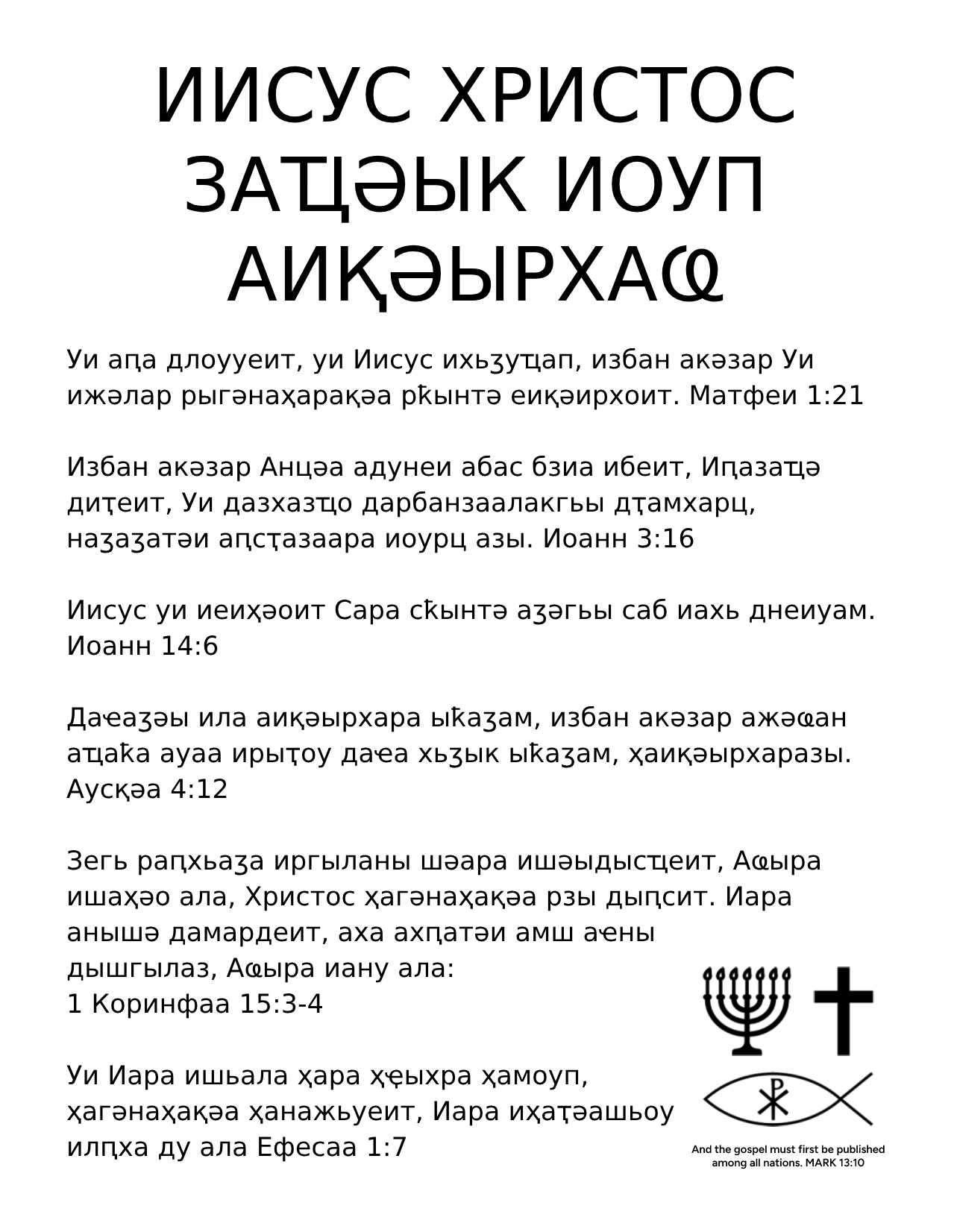 Abkhaz Gospel Tract - ONLY JESUS CHRIST SAVES