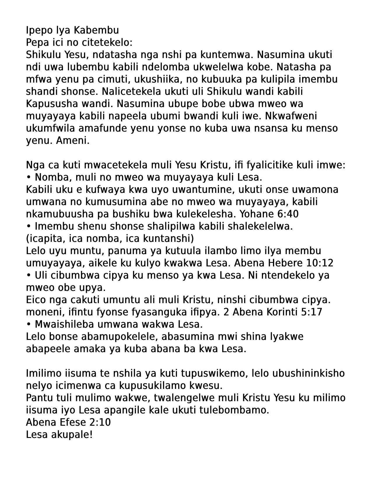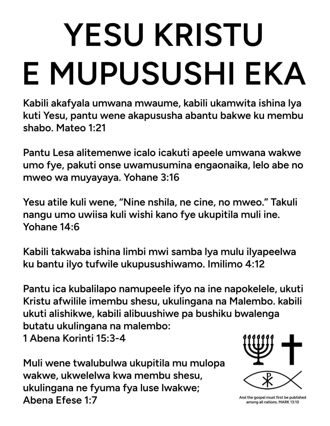 Bemba Gospel Tract - ONLY JESUS CHRIST SAVES