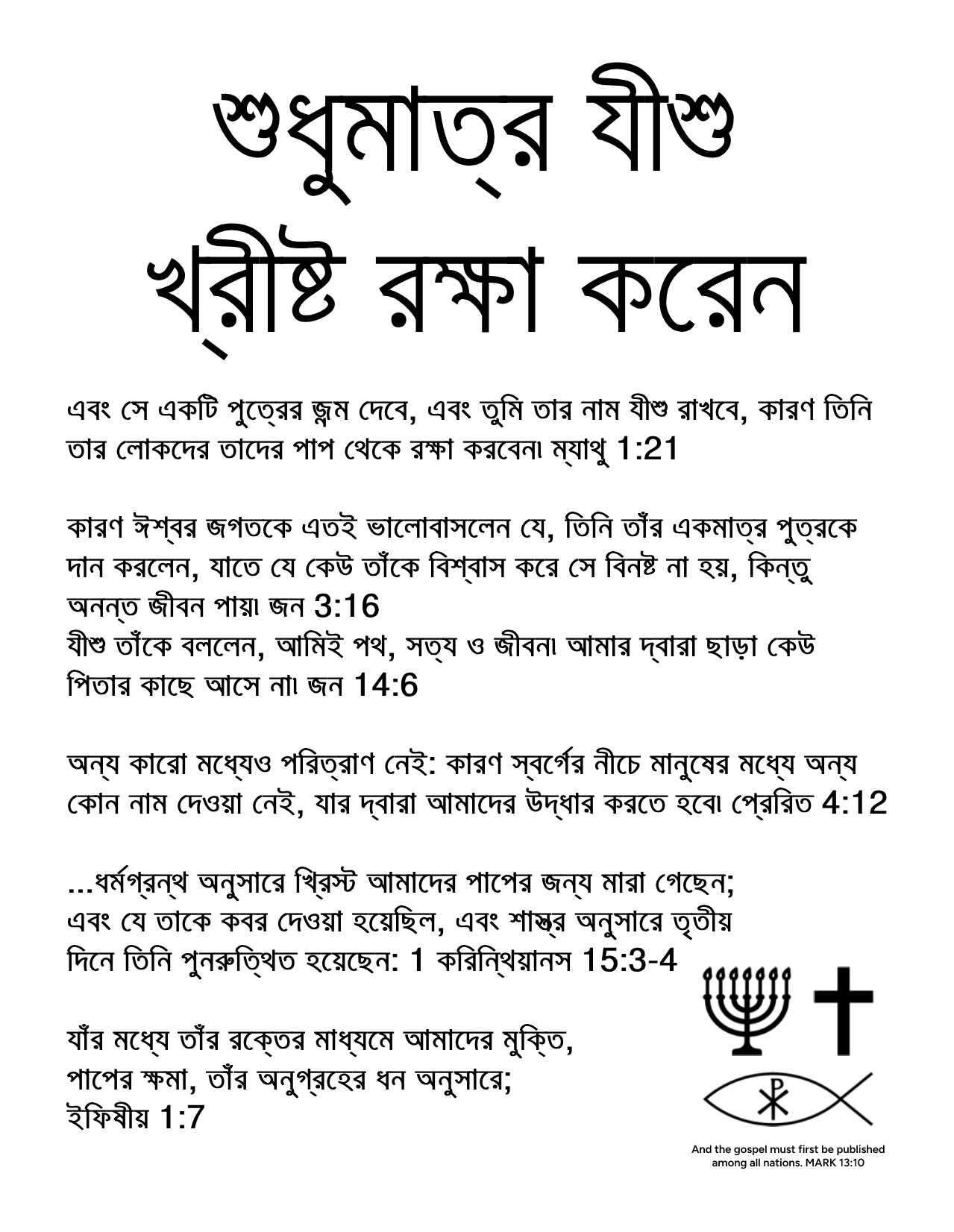 Bengali Gospel Tract - ONLY JESUS CHRIST SAVES