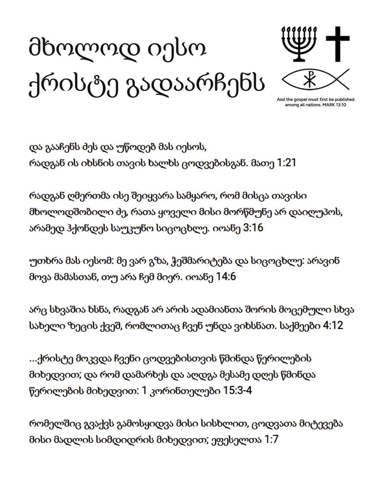 Georgian Gospel Tract - ONLY JESUS CHRIST SAVES