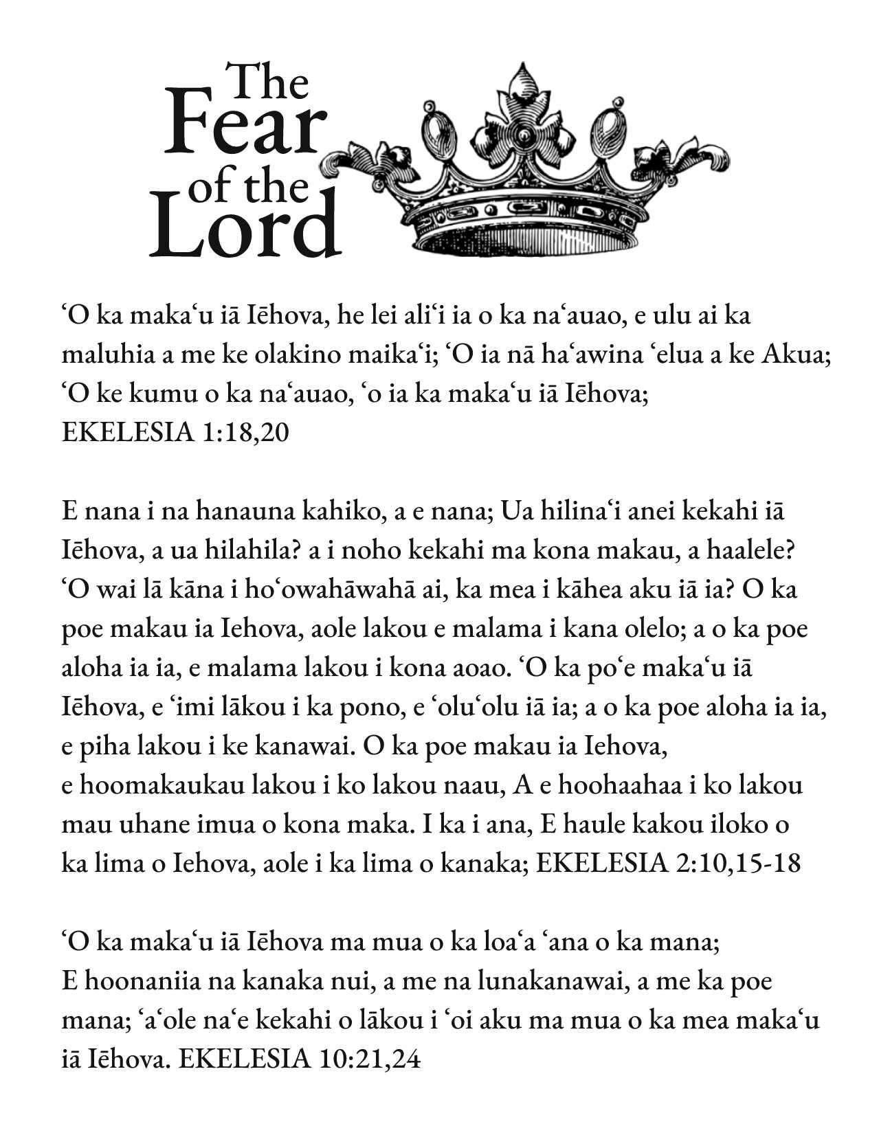 Hawaiian The Fear of the LORD Tract