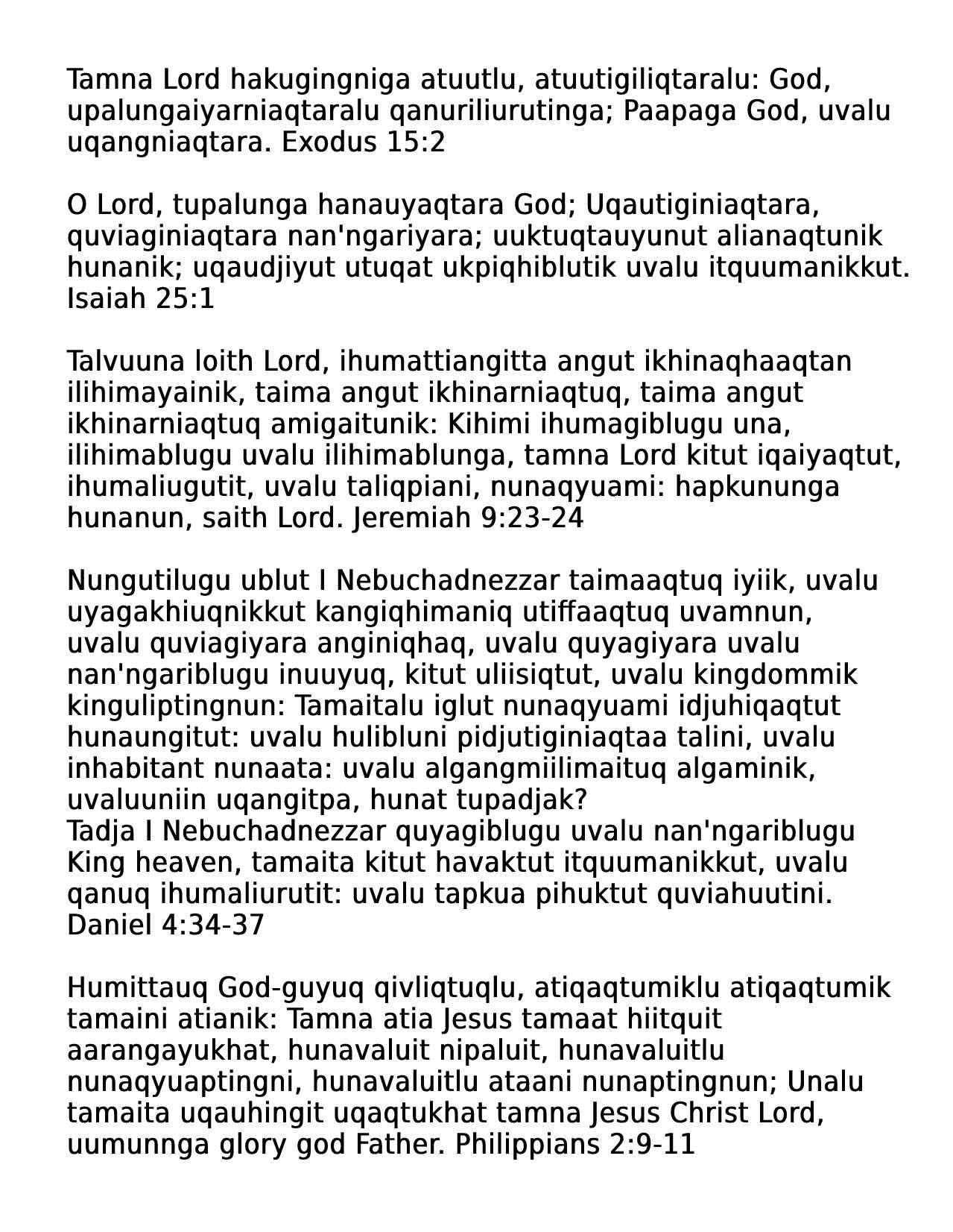 Inuinnaqtun Praise Worship Thanksgiving Tract
