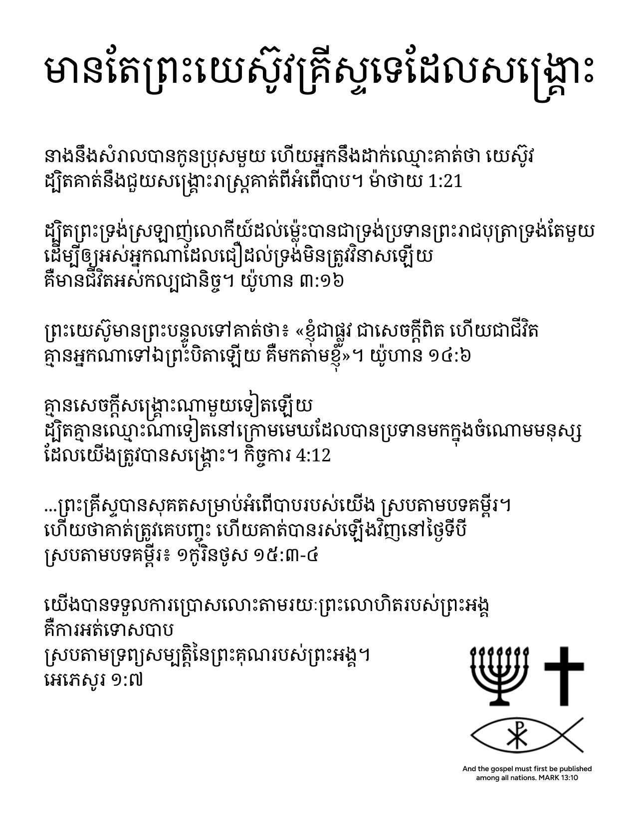 Khmer Gospel Tract - ONLY JESUS CHRIST SAVES