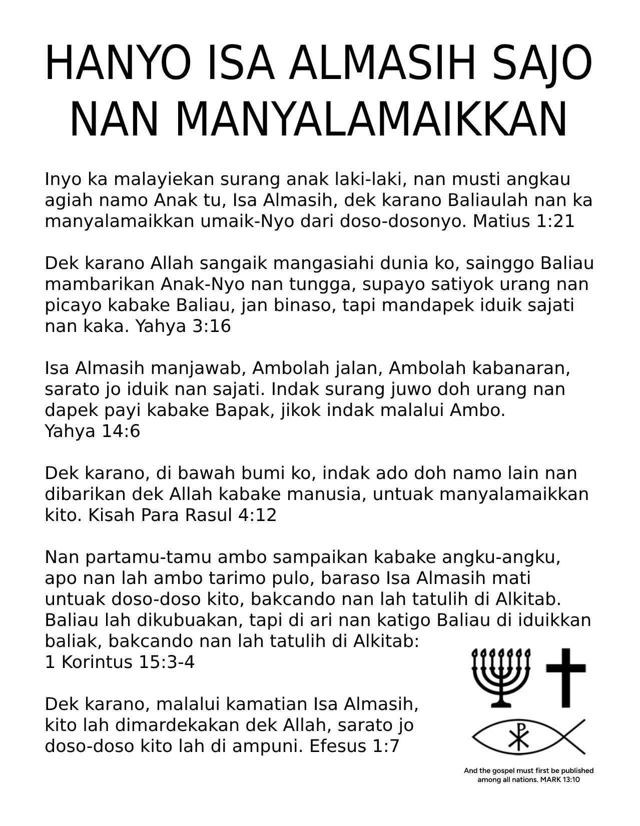 Minang Gospel Tract - ONLY JESUS CHRIST SAVES