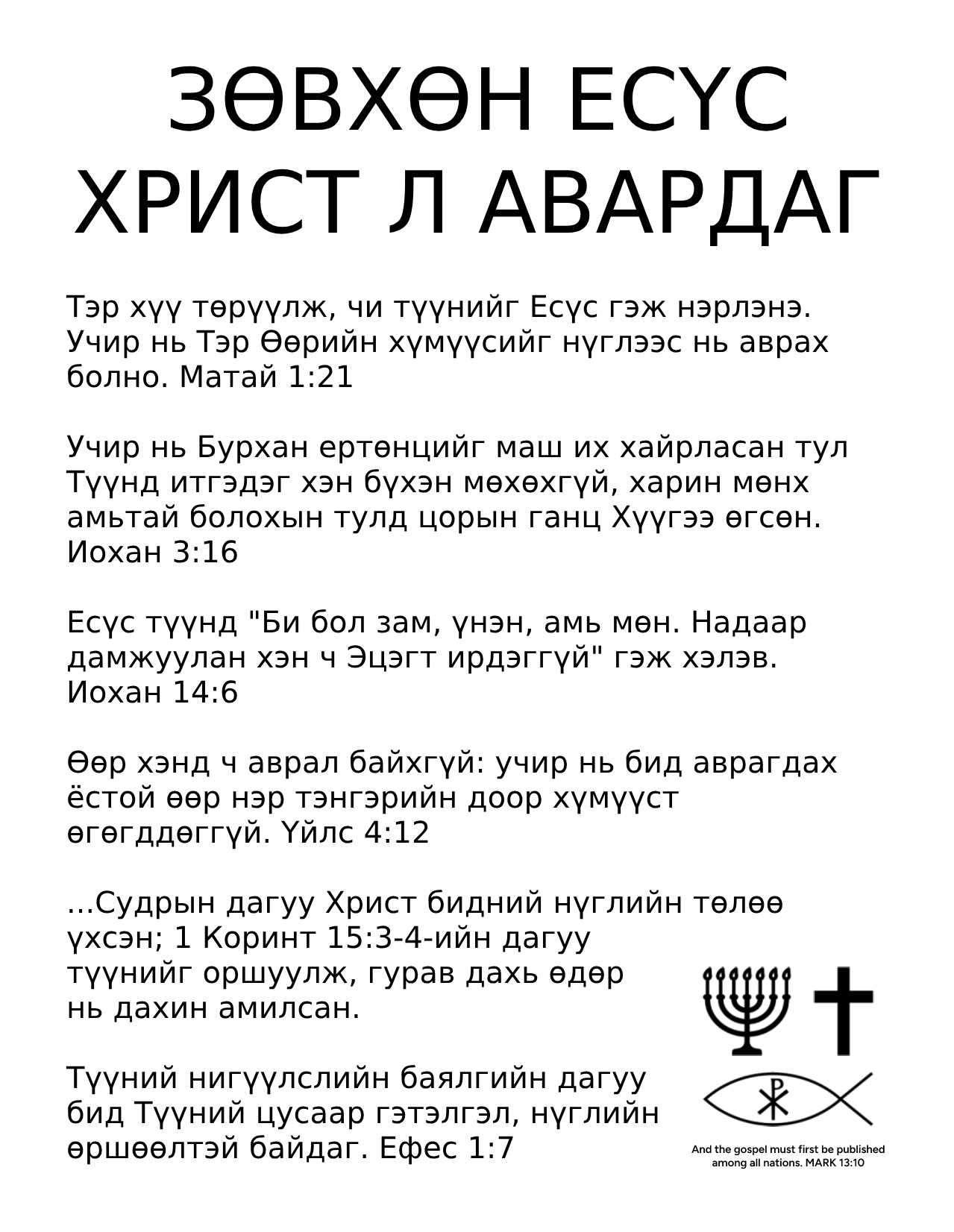Mongolian Gospel Tract - ONLY JESUS CHRIST SAVES
