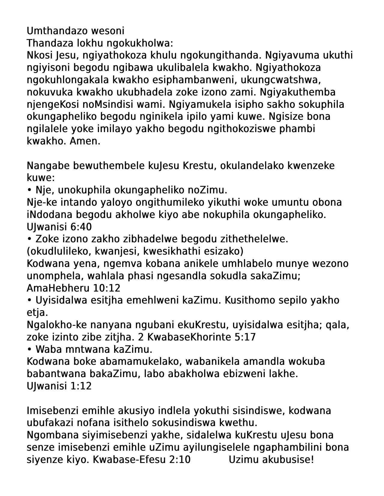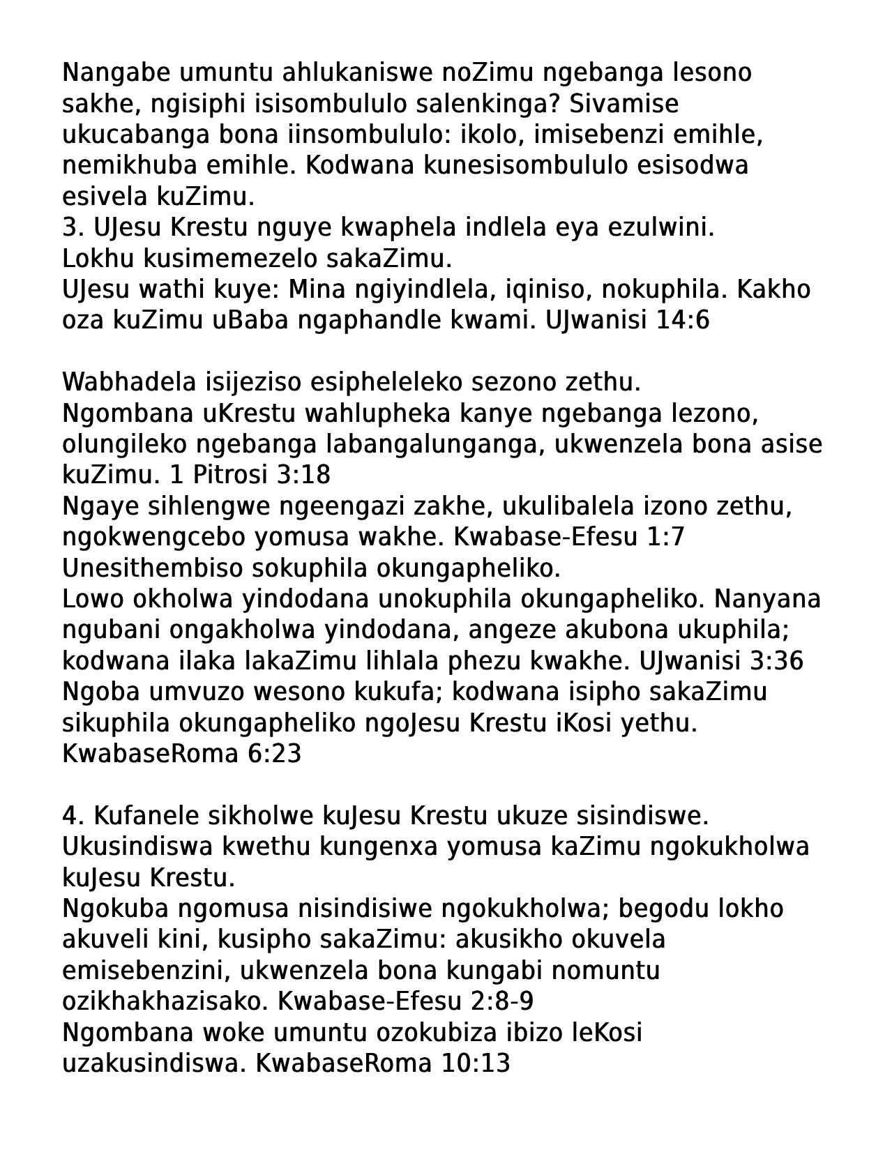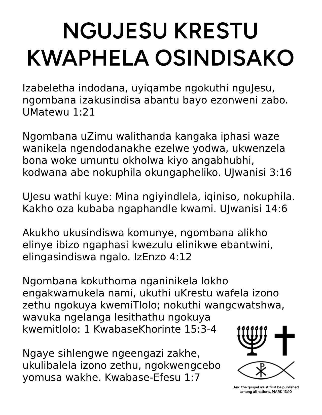 Ndebele (South) Gospel Tract - ONLY JESUS CHRIST SAVES